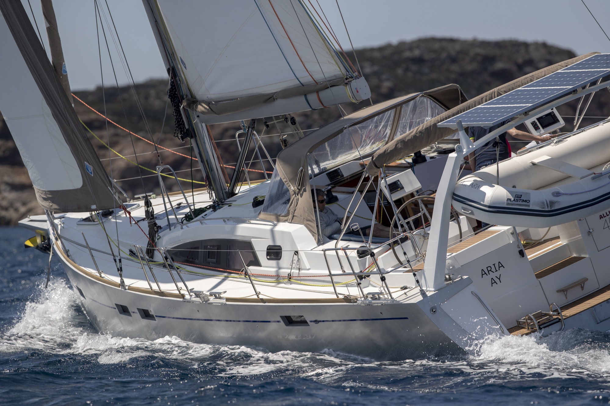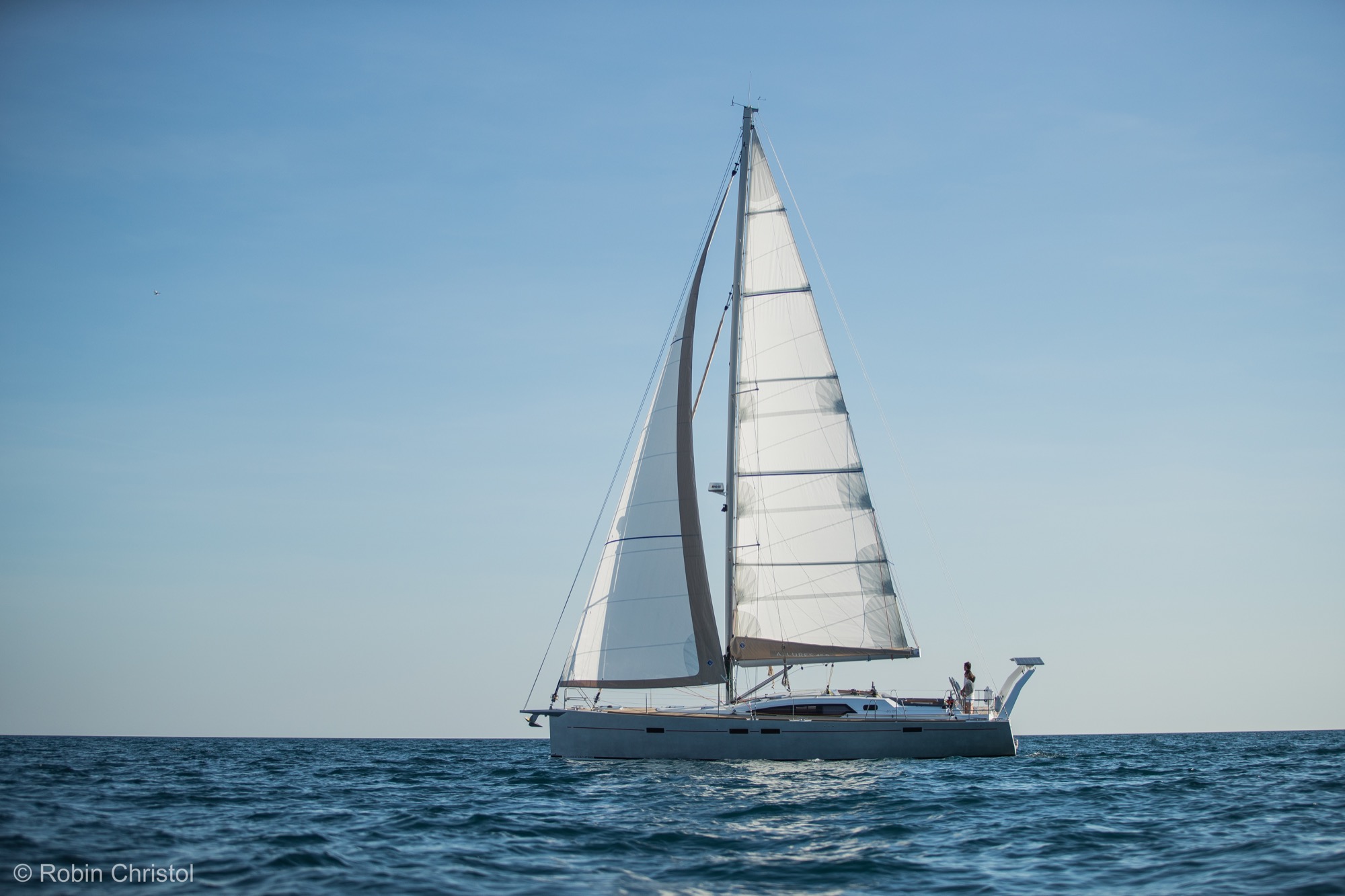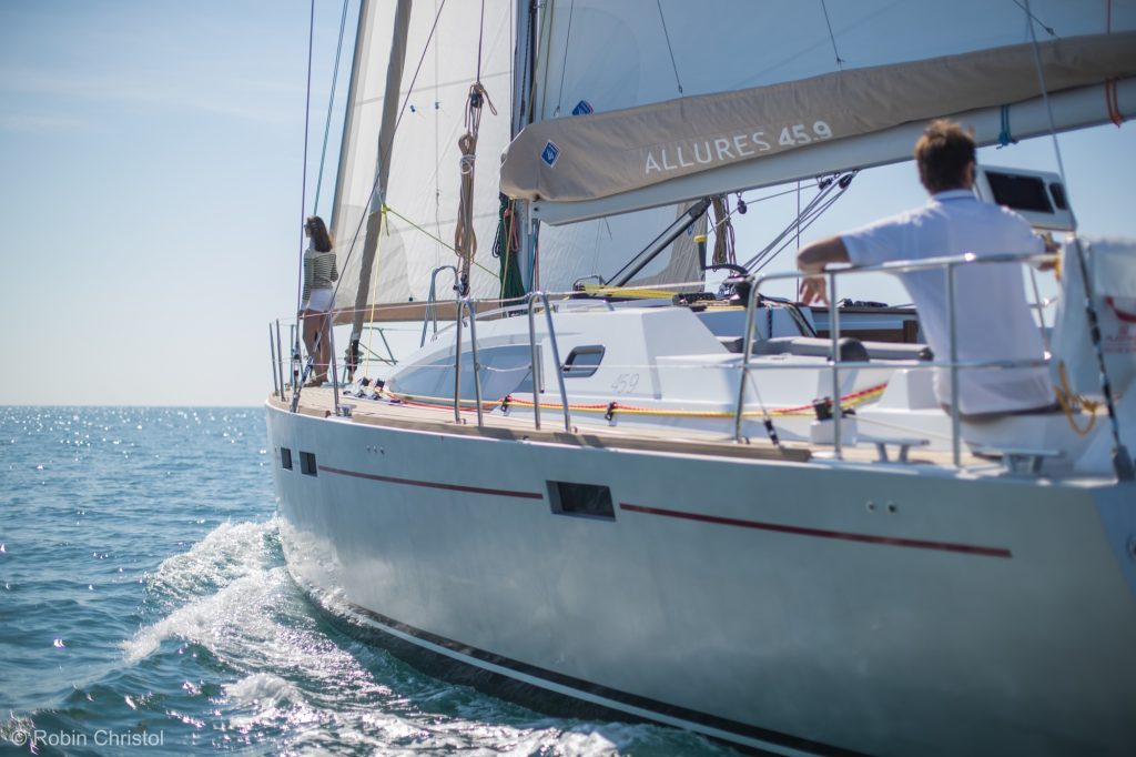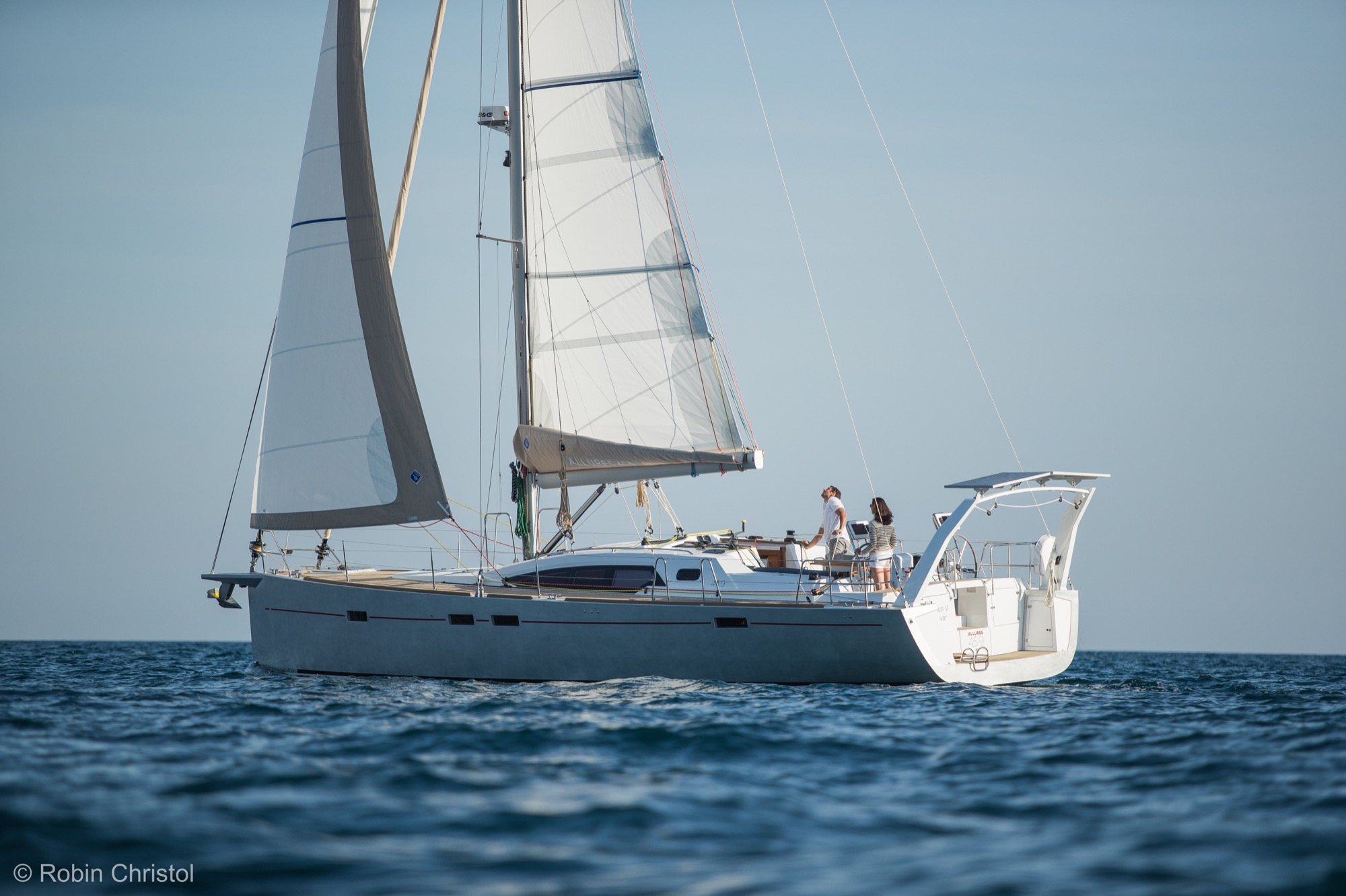 För er som planerar att ”kasta loss på riktigt” i en båt för alla världens farvatten och för alla sorts väder, titta gärna lite närmare på denna eller någon systermodell från Allures eller Garcia! Båda dessa varv ingår i samma grupp, och delar samma filosofi – att förse sina kunder med den mest genomtänkta och säkra båt marknaden kan uppbringa för långdistanssegling, och som därmed även ska fungera som ”bostad” under lång tid. Som referens kan nämnas ARC:ens upphovsman Jimmy Cornell, som bland annat har gjort Nordvästpassagen i sin specialbyggda Garcia 45 Explorer. Klicka även på ”360 tour” och upplev en givande rundvisning på båten! En grund köl och hög prestanda är kärnan i varje båt från Allures Yachting, som kombinerar innovation och lång erfarenhet av långsfärdssegling för att utforma segelbåtar in i minsta detalj för de mest krävande förhållanden. Förutom den klassiska centerbordsversionen av Allures 45.9 finns nu även en version med lyftköl. Det rätande momentet hos de båda versionerna är identiskt, och segelarea och masthöjd är mycket lika; dock är lyftkölsversionen 1.970 kg lättare medan centerbordsversionen låter dig ställa båten på dy- eller sandbotten vid exempelvis kraftigt tidvatten. Aluminiumskrov Skroven på Allures båtar har alltid tillverkats av aluminium, ett material med oslagbar hållfasthet, för maximal säkerhet till havs. Formgivningen av Berret-Racoupeau Yacht Design kombinerar eleganta linjer med imponerande prestanda. Båten är konstruerad med en kort, fast köl med ett infällbart centerbord, allt i aluminium. Däck i glasfiberarmerad plast Allures Yachting var först med att kombinera styrkan hos ett aluminiumskrov med prestandan av ett däck och däckshus i glasfiberarmerad plats – ett material som är lätt, elegant, ergonomiskt och välisolerande. Denna kombination ger utmärkt balans och särskilt goda sjöegenskaper. Utrustning Genomtänkt planlösning, lätt tillgång till utrustning, tankar med hög kapacitet och en mängd andra praktiska detaljer som underlättar vardagen till sjöss. För en fullständig specifikation, klicka här (öppnas i ett nytt fönster). ”Lämnade uppgifter förväntas vara korrekta men kan ej garanteras”.