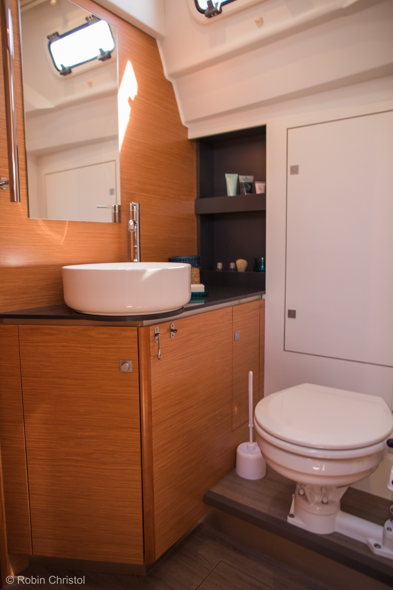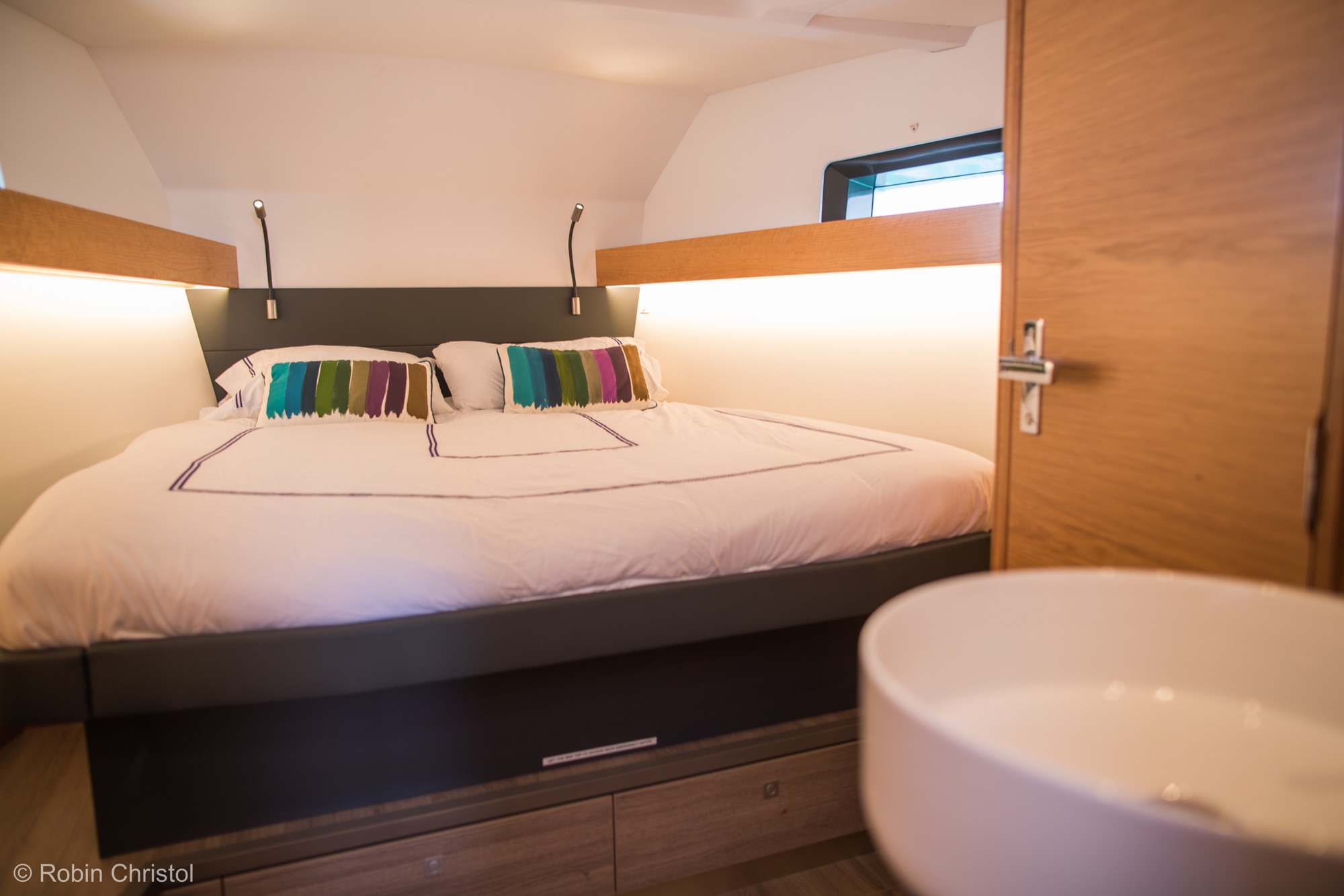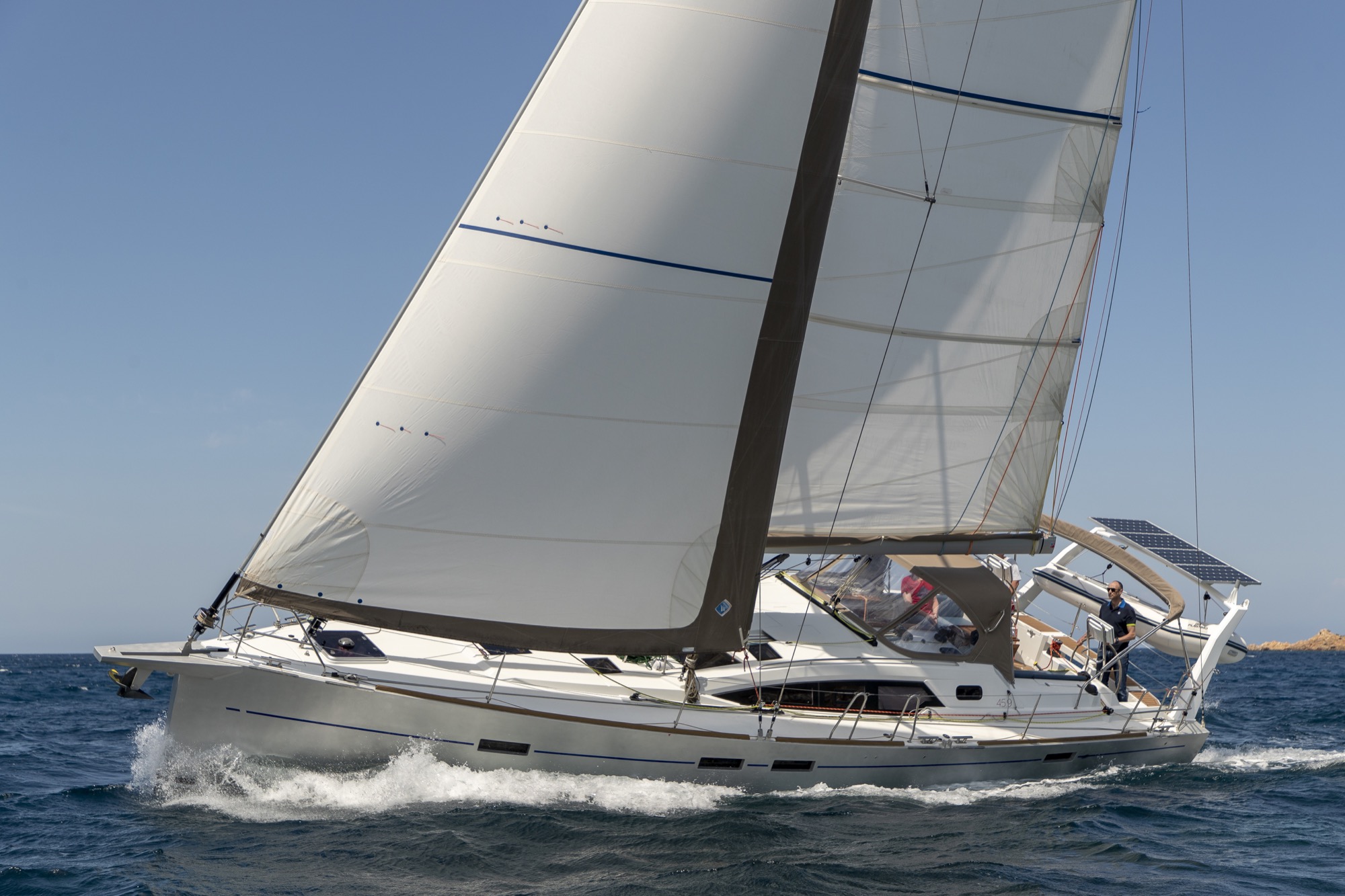 För er som planerar att ”kasta loss på riktigt” i en båt för alla världens farvatten och för alla sorts väder, titta gärna lite närmare på denna eller någon systermodell från Allures eller Garcia! Båda dessa varv ingår i samma grupp, och delar samma filosofi – att förse sina kunder med den mest genomtänkta och säkra båt marknaden kan uppbringa för långdistanssegling, och som därmed även ska fungera som ”bostad” under lång tid. Som referens kan nämnas ARC:ens upphovsman Jimmy Cornell, som bland annat har gjort Nordvästpassagen i sin specialbyggda Garcia 45 Explorer. Klicka även på ”360 tour” och upplev en givande rundvisning på båten! En grund köl och hög prestanda är kärnan i varje båt från Allures Yachting, som kombinerar innovation och lång erfarenhet av långsfärdssegling för att utforma segelbåtar in i minsta detalj för de mest krävande förhållanden. Förutom den klassiska centerbordsversionen av Allures 45.9 finns nu även en version med lyftköl. Det rätande momentet hos de båda versionerna är identiskt, och segelarea och masthöjd är mycket lika; dock är lyftkölsversionen 1.970 kg lättare medan centerbordsversionen låter dig ställa båten på dy- eller sandbotten vid exempelvis kraftigt tidvatten. Aluminiumskrov Skroven på Allures båtar har alltid tillverkats av aluminium, ett material med oslagbar hållfasthet, för maximal säkerhet till havs. Formgivningen av Berret-Racoupeau Yacht Design kombinerar eleganta linjer med imponerande prestanda. Båten är konstruerad med en kort, fast köl med ett infällbart centerbord, allt i aluminium. Däck i glasfiberarmerad plast Allures Yachting var först med att kombinera styrkan hos ett aluminiumskrov med prestandan av ett däck och däckshus i glasfiberarmerad plats – ett material som är lätt, elegant, ergonomiskt och välisolerande. Denna kombination ger utmärkt balans och särskilt goda sjöegenskaper. Utrustning Genomtänkt planlösning, lätt tillgång till utrustning, tankar med hög kapacitet och en mängd andra praktiska detaljer som underlättar vardagen till sjöss. För en fullständig specifikation, klicka här (öppnas i ett nytt fönster). ”Lämnade uppgifter förväntas vara korrekta men kan ej garanteras”.