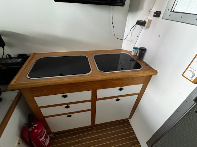 För säker och enkel hantering är båten utrustad med både bog- och akterpropeller, samt trimplan med isskydd. Runt hela relingen sitter kraftiga grabbräcken i rostfritt stål för ökad säkerhet ombord. Medföljer gör även alla nödvändiga tillbehör såsom ankare, tampar och fendrar – båten är redo att användas direkt.