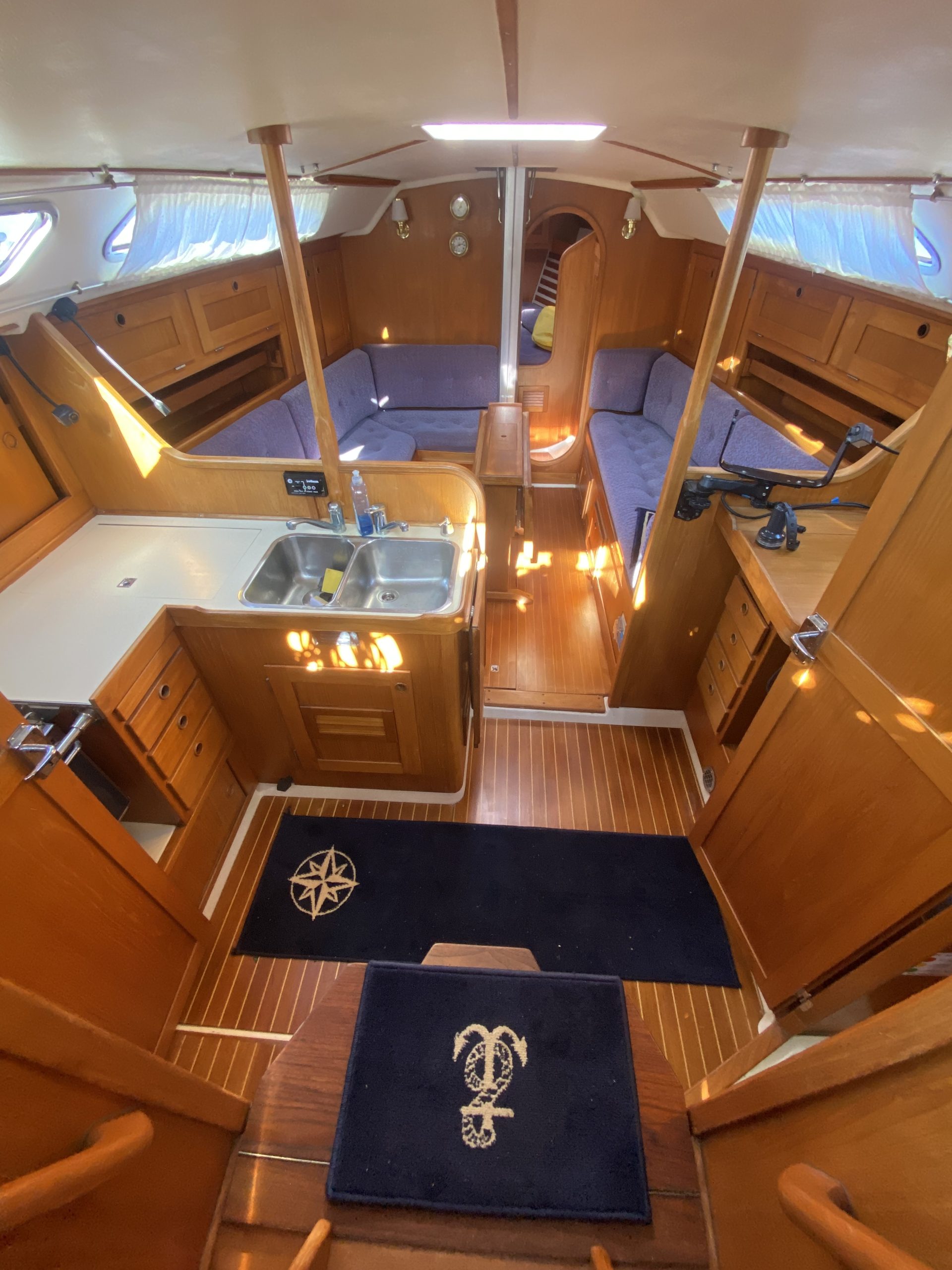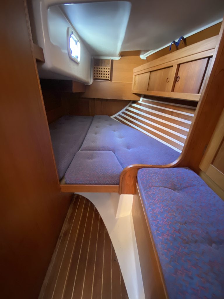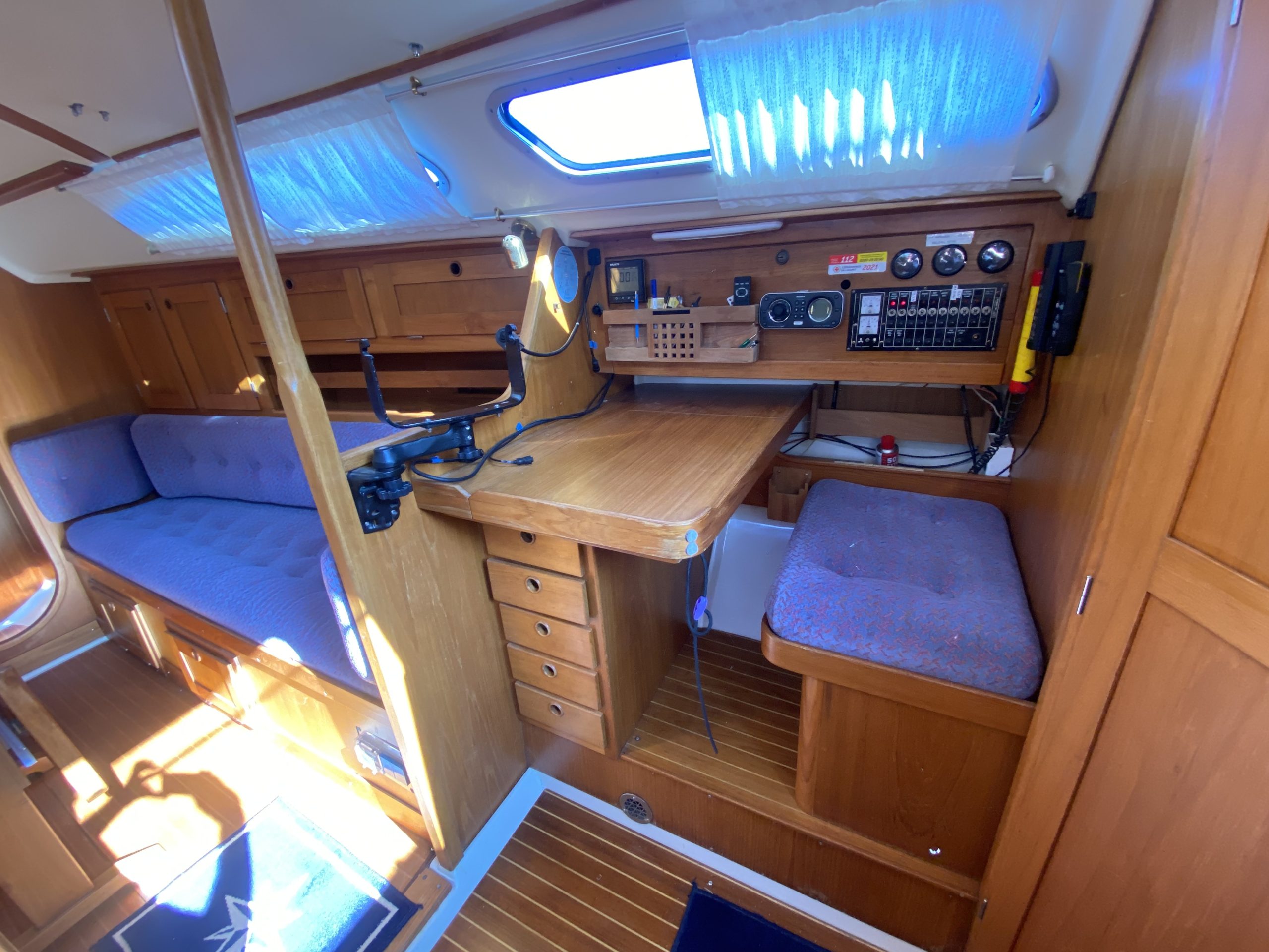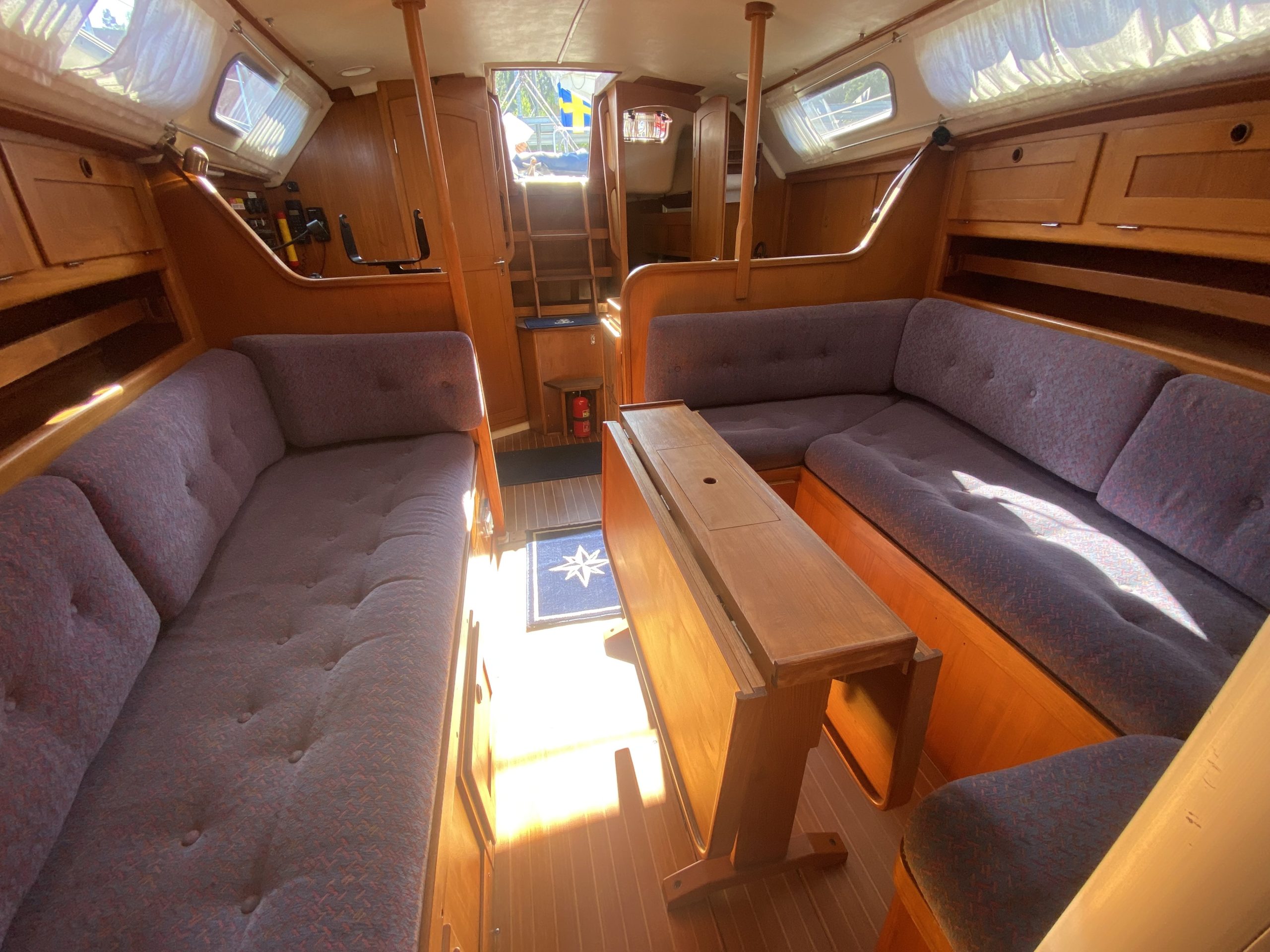Comfortina 38 är en klassiskt vacker segelbåt som ritades utan hänsyn till speciella mätregler. Detta gör att skrovet är mycket vackert, harmoniskt i linjerna och ger starka känslor av ”klassiskt vacker snabbseglare”, vilket också var så varvet ville att köpare skulle se båten när hon lanserades. Detta gäller även idag. Inredningen är mycket vackert gjord i teak och ger ett elegant och gediget intryck. Här finns en planlösning som idag kan betraktas som klassisk i detta storlekssegment med en rymlig, lätt assymetrisk salong, framåtvänt L-format och rymligt pentry, förpik och en akterruff. Toaletten ligger vid nedgången och är ljus och rymlig. Båtens inredning är semestervänlig även med dagens mått mätt. Denna Comfortina 38 har varit i nuvarande ägares förvar sedan 1993, och har löpande underhållits och uppgraderats med bl. a. ny rigg från Benns från 2002, motor från 2000 med enbart ca 850 h. Den är tidigare Gotland runt vinnare 1995–96 och med båten följer en omfattande seglingsgarderob.