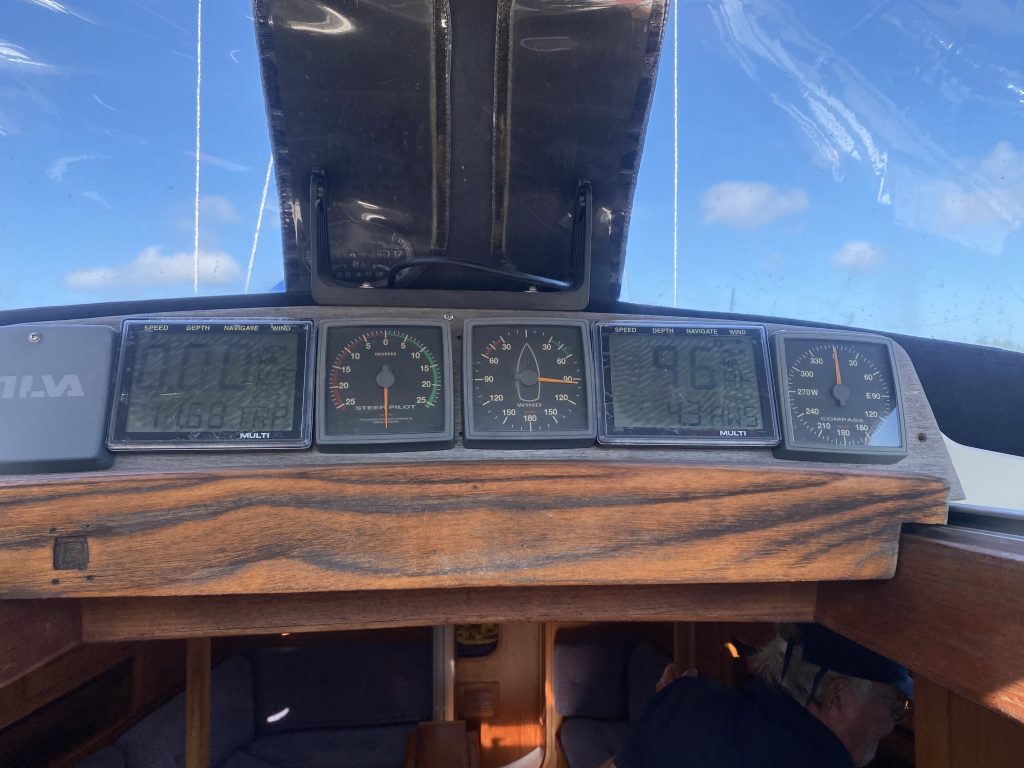 Plotter Garmin GPS Map XSV i sittbrunn. Äldre Raymarine E80 på navplats
