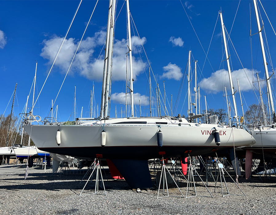 Bruce Farr, en av världens främsta båtdesigners ritade denna snabbseglande 40-fotare som byggdes på Orust och inreddes på Rosätra varvet 1990. Vackra klassiska linjer i kombination med gedigen och ombonad träinredning ger både den krävande seglaren och hela familjen glädje och det mesta man kan begära. Två separata akterkabiner med dubbelbäddar och förvaringsskåp, stort pentry med varmvatten. Rymlig salong med soffor och stort fällbart bord skapar mysig atmosfär. Förpik med två fullängdsbäddar. För seglaren finns stor,självslående rullfock eller rullgenua samt tvår storlekar på spinnaker, en gennaker. Samtliga segel i gott cruising skick. Fall, rev och trimlinor dragna till sittbrunnen, kraftfull kick, rodrigg. Båten är välbalanserad, kvick och mycket lättmanövrerad. Den går utmärkt att segla ensam samtidigt som sittbrunnen ger plats för större besättning.