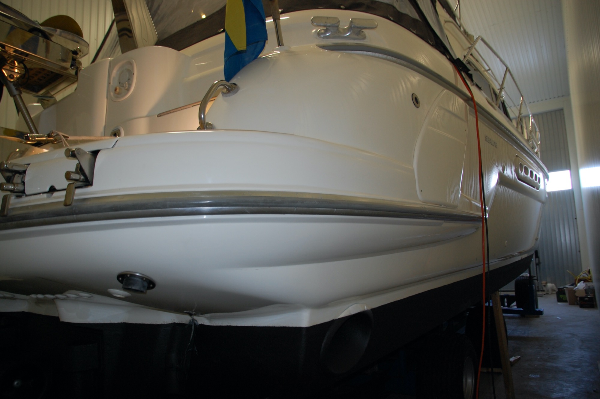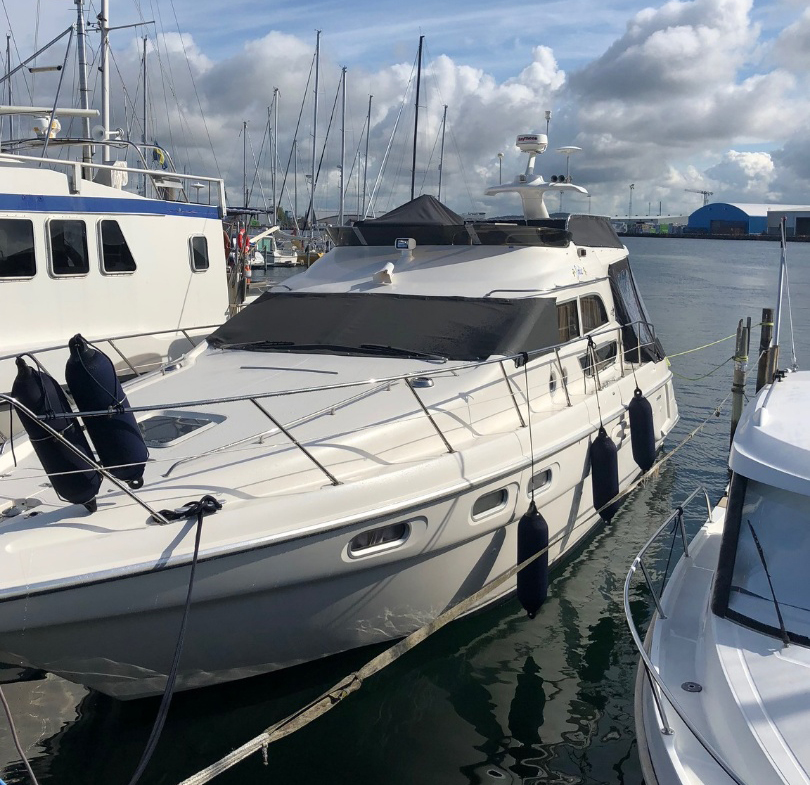 Sealine 420 Stateman – 1995 i mycket fint skick! Nya uppdateringar har gjorts de senaste åren. Har förvarats inomhus i varmhall de sista 12 åren. Maskiner servade hösten 2020.