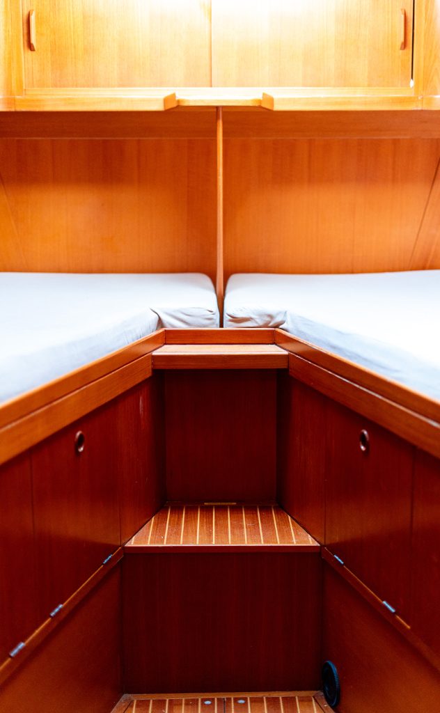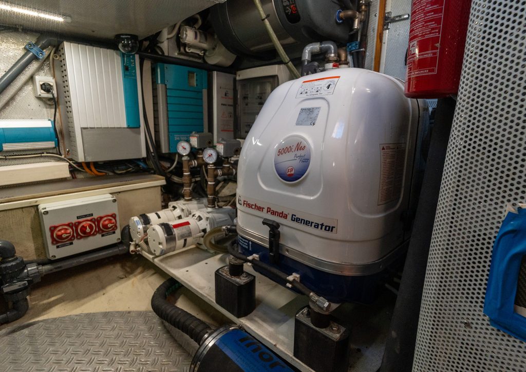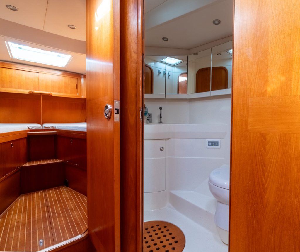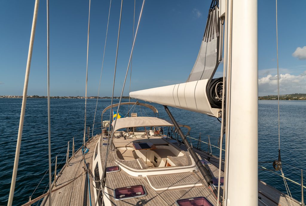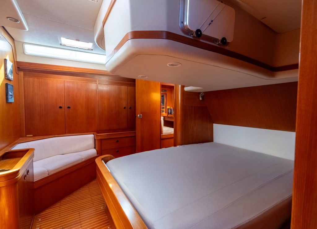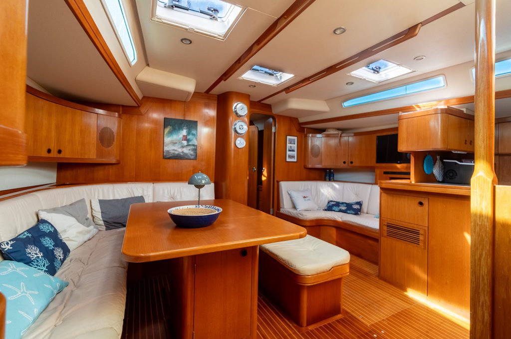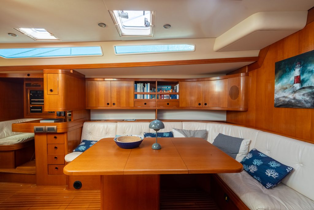 Detta exemplar har uppdaterats kontinuerligt med omfattande refitarbeten under senare år, där bland annat ny segelgarderob, moderniserad navigationsutrustning med radar, AIS och värmekamera samt uppgraderade tekniska system säkerställer hög funktionalitet och driftsäkerhet. Riggen i kolfiber från Hall Spars, tillsammans med furlingbom, elektriska vinschar och alla linor dragna till sittbrunnen, gör båten mycket lätt att hantera även short-handed. Under däck erbjuds hög komfort med luftkonditionering, dieselvärmare, watermaker och ett välutrustat pentry, vilket gör båten lämpad för såväl längre oceanseglingar som bekvämt liv ombord. En väl dokumenterad och noggrant underhållen yacht som representerar en sällsynt kombination av prestanda, byggkvalitet och långfärdsegenskaper.