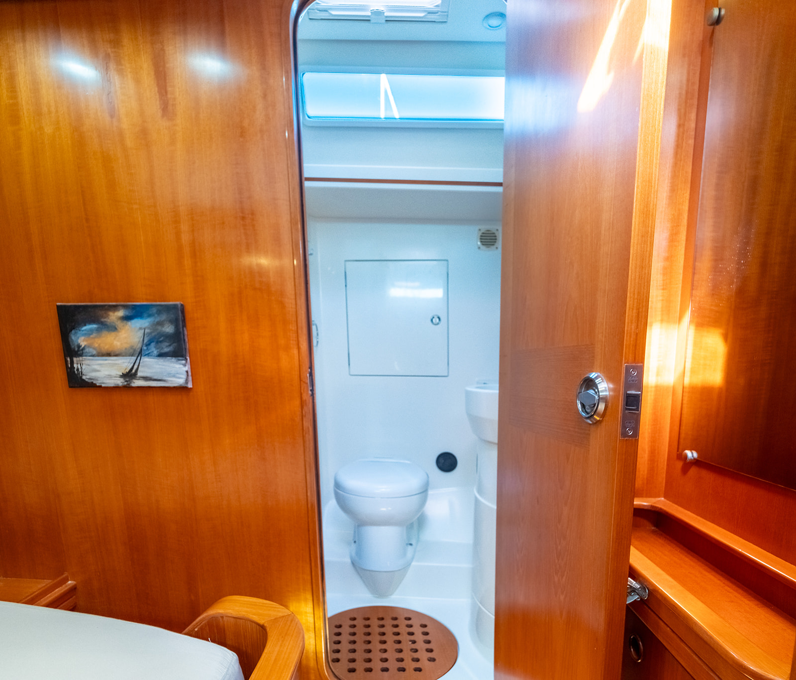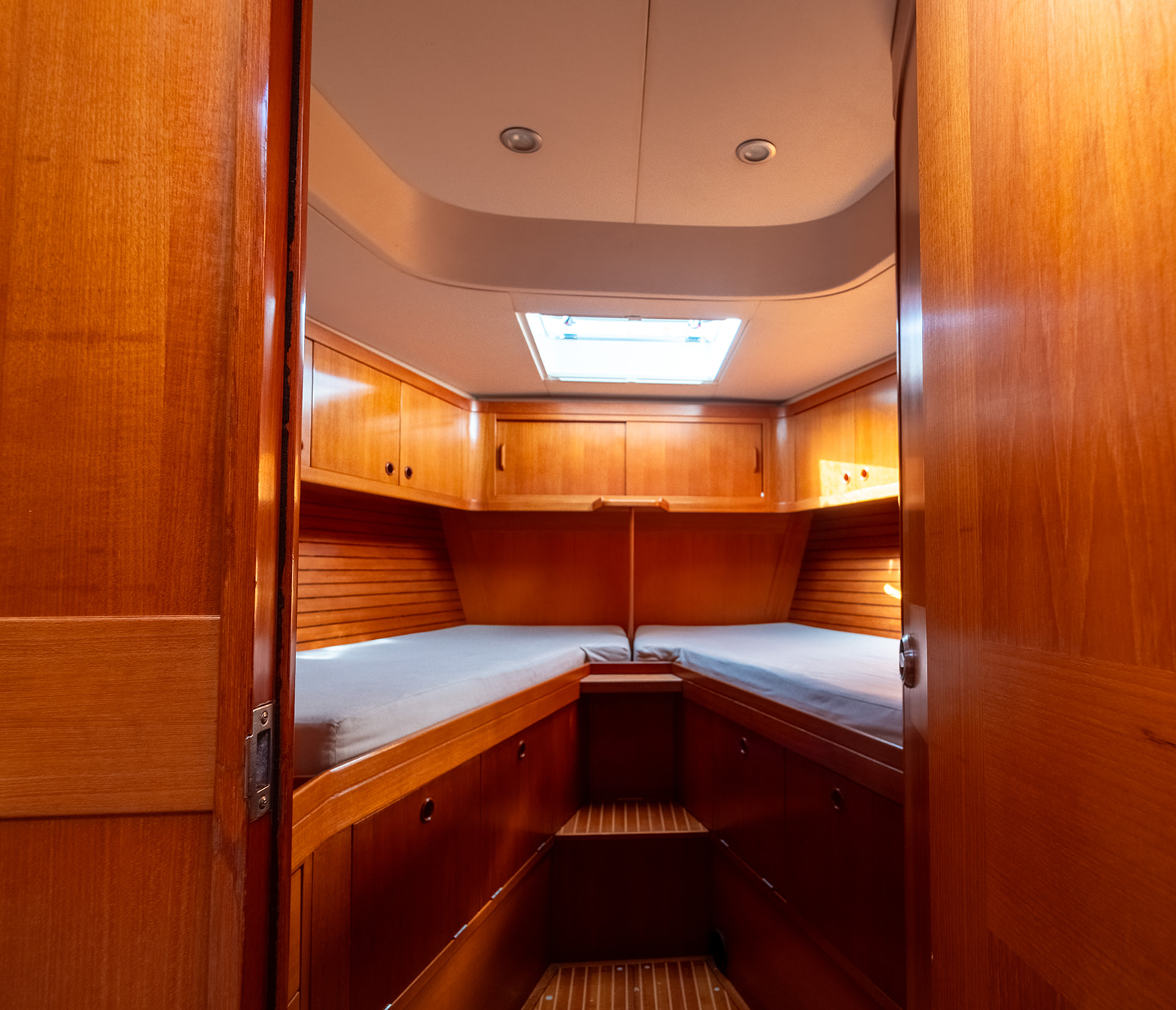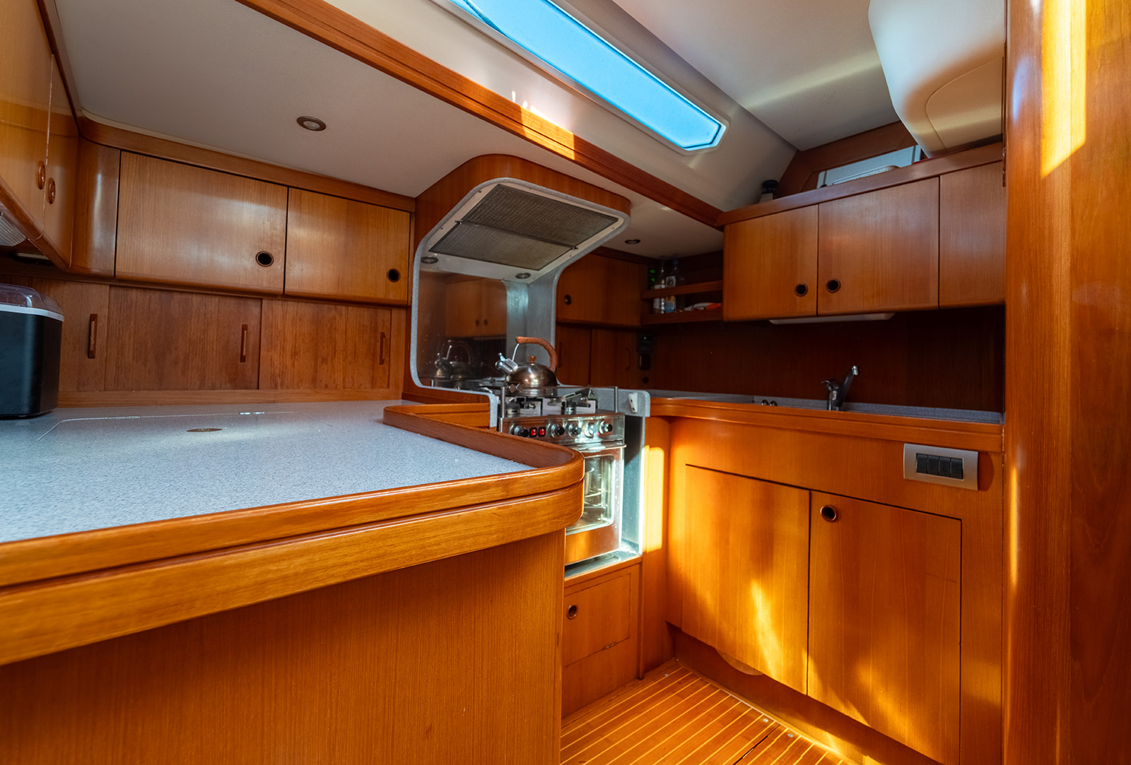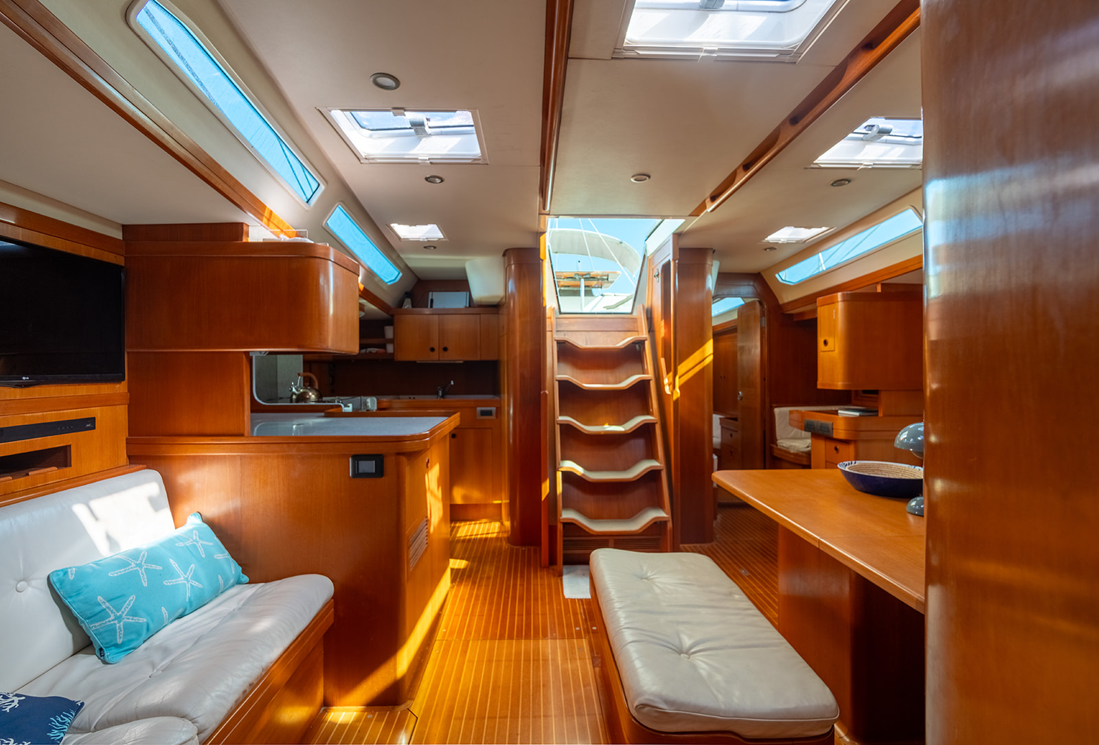 Detta exemplar har uppdaterats kontinuerligt med omfattande refitarbeten under senare år, där bland annat ny segelgarderob, moderniserad navigationsutrustning med radar, AIS och värmekamera samt uppgraderade tekniska system säkerställer hög funktionalitet och driftsäkerhet. Riggen i kolfiber från Hall Spars, tillsammans med furlingbom, elektriska vinschar och alla linor dragna till sittbrunnen, gör båten mycket lätt att hantera även short-handed. Under däck erbjuds hög komfort med luftkonditionering, dieselvärmare, watermaker och ett välutrustat pentry, vilket gör båten lämpad för såväl längre oceanseglingar som bekvämt liv ombord. En väl dokumenterad och noggrant underhållen yacht som representerar en sällsynt kombination av prestanda, byggkvalitet och långfärdsegenskaper.