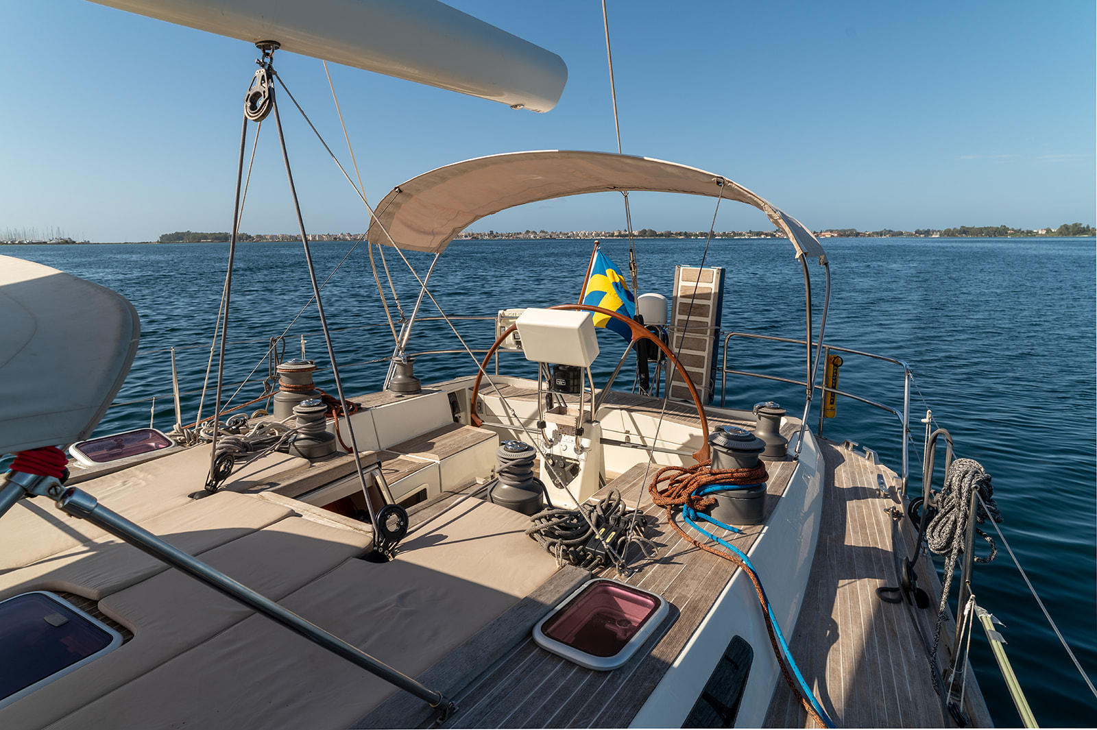 Båten har genomgått omfattande uppgraderingar och är optimerad för snabb och säker segling även med liten besättning. Interiören håller den klassiska Baltic-standarden med gedigen teakfinish, smart layout med fyra kabiner och generösa utrymmen.