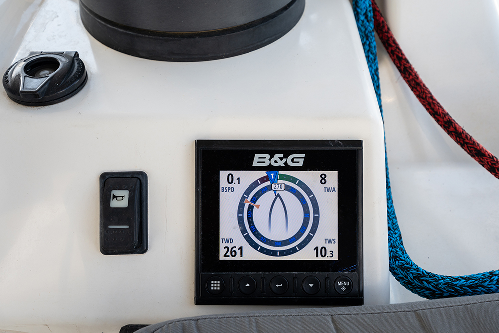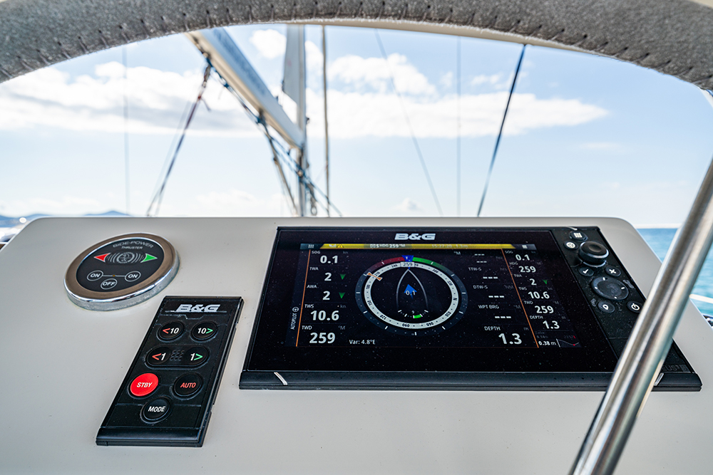 • Autopilot B&G (kontrollenhet vid styrbord + trådlös fjärrkontroll WR10)