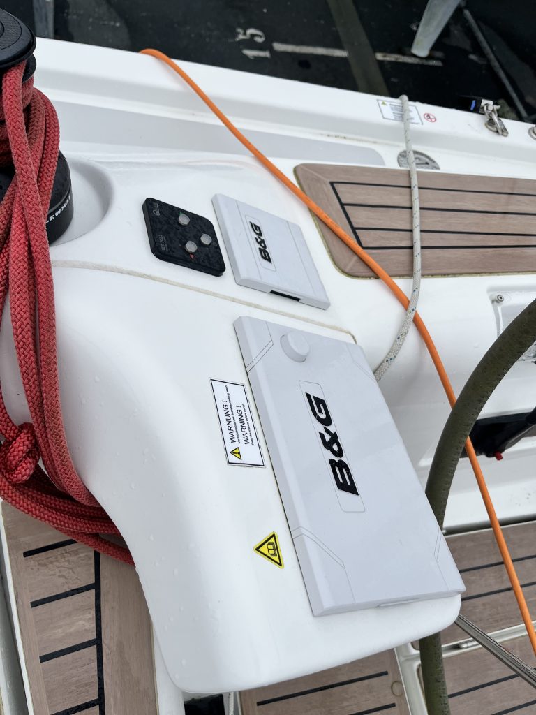 Navigationsutrustningen består av ett komplett och konsekvent B&G-system med dubbla plottrar, Triton-displayer, autopilot med fjärrkontroll, AIS och radar. Det är en nivå som normalt återfinns på båtar avsedda för längre seglingar eller mer avancerad navigation och ger god redundans och överblick ombord.