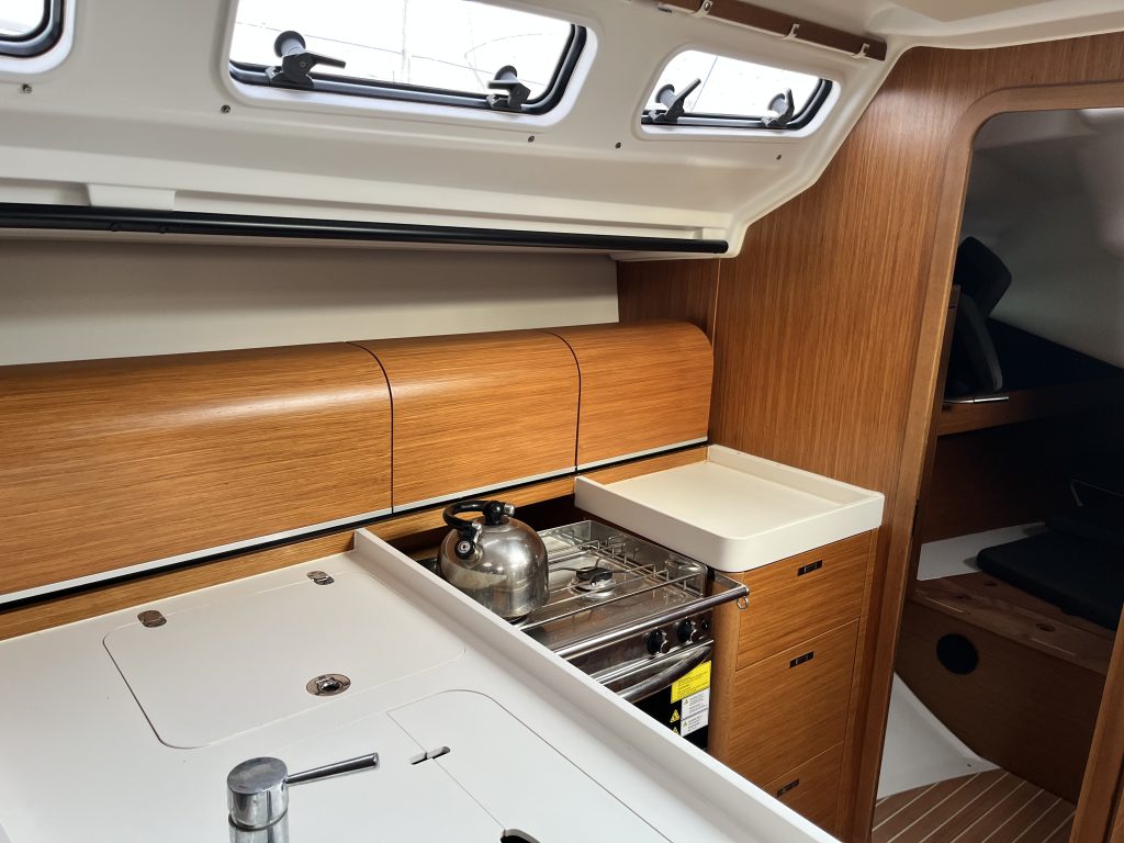 Den här båten är utrustad i SQ-utförande (Speed & Quality), vilket innebär en högre specifikationsnivå med fokus på seglingsegenskaper och funktion. Dehlers Quick Reefing System möjliggör revning och segelhantering direkt från sittbrunnen, vilket gör båten praktisk att segla shorthanded utan att kompromissa med kontrollen.Segelgarderoben från Quantum, med performance-storsegel, fock och gennaker med CX-system, ger goda möjligheter att anpassa båten efter både förhållanden och ambitionsnivå. Tillsammans med elektrisk vinsch och genomtänkt däckslayout är båten riggad för att användas aktivt, inte bara för transportsegling.