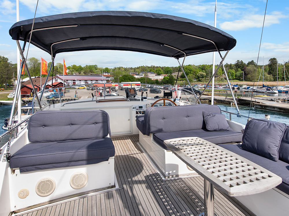 • Flybridge: Generös med stor biminitopp, plats för 10-12 personer, bekväm soffhörna, bord och BBQ – perfekt för grillning och umgänge.