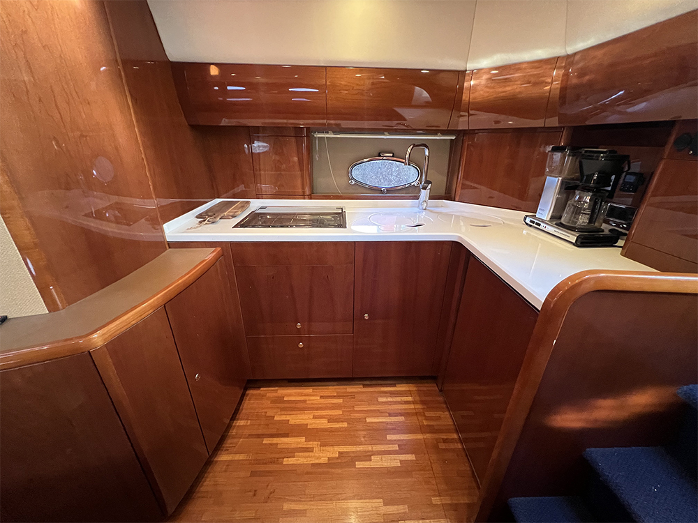 Med dubbla Volvo Penta D6-350 dieselmotorer och både bog- och akterpropeller manövreras båten enkelt i trånga hamnar och levererar en stabil, tyst och behaglig gång även i marschfart. Sittbrunnen är rymlig och socialt planerad med stor sittgrupp, wetbar och utekök – en naturlig samlingsplats under färd och vid förtöjning. Under däck möts du av två kabiner, ett välplanerat pentry och en inredd salong med ljusa materialval och god komfort, kompletterat av luftvärmare och varmvattenberedare för säsongsförlängning.