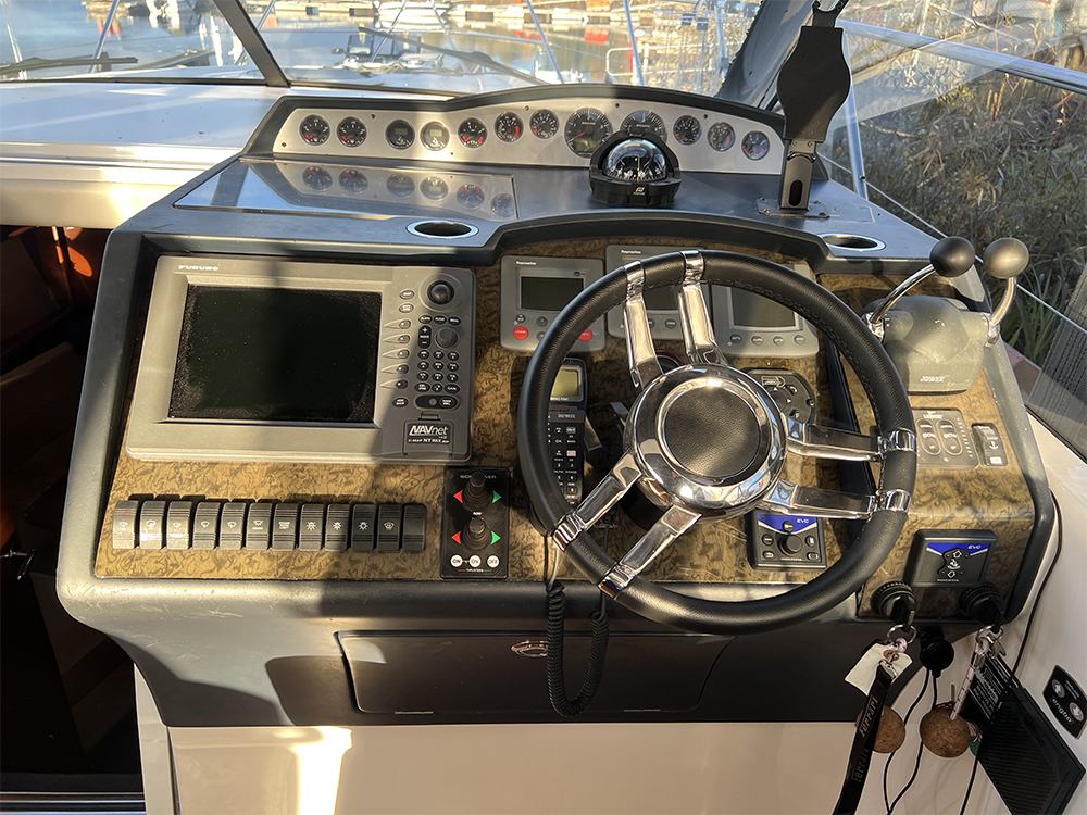Navigationsutrustningen består av Furuno-plotter, radar, Raymarine-autopilot och VHF från Simrad, vilket ger en trygg helhet för både kustnära och längre turer. Onan-generatorn, uppgraderad ljudanläggning, nya kapell och praktiska detaljer som fjärrstyrt akterankare och teakdäck gör båten väl rustad för bekvämt båtägande. Med dokumenterad servicehistorik och förvaring i varmhall framstår denna V42 som ett genomtänkt val för dig som söker en sportcruiser med kvalitet och driftsäkerhet i fokus.