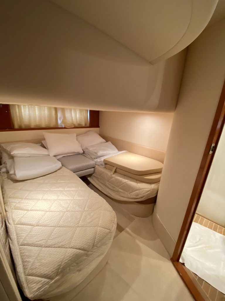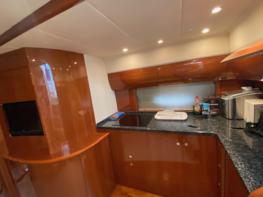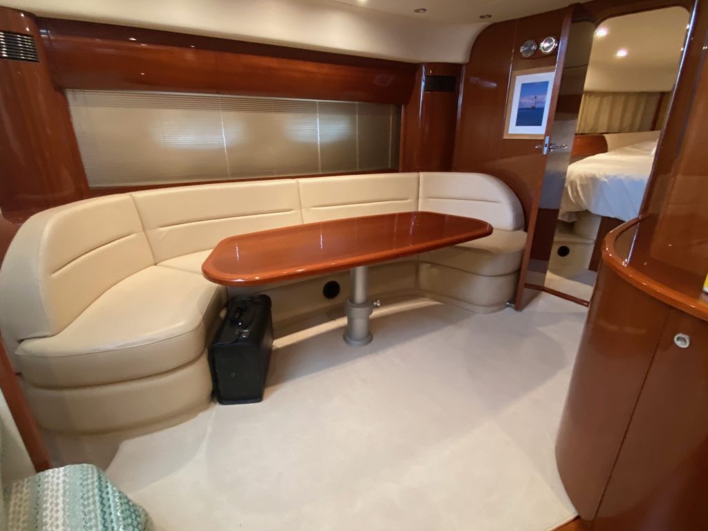Båten är välutrustad och uppdaterad med modern navigation, inklusive radar och plotter, samt nyare installationer som bog- och akterpropeller med fjärrstyrning och holdingfunktion. Ombord erbjuds en genomtänkt layout med två rymliga kabiner, salong, två toaletter och flera duschmöjligheter, vilket gör henne idealisk för både längre semestrar och sociala turer.