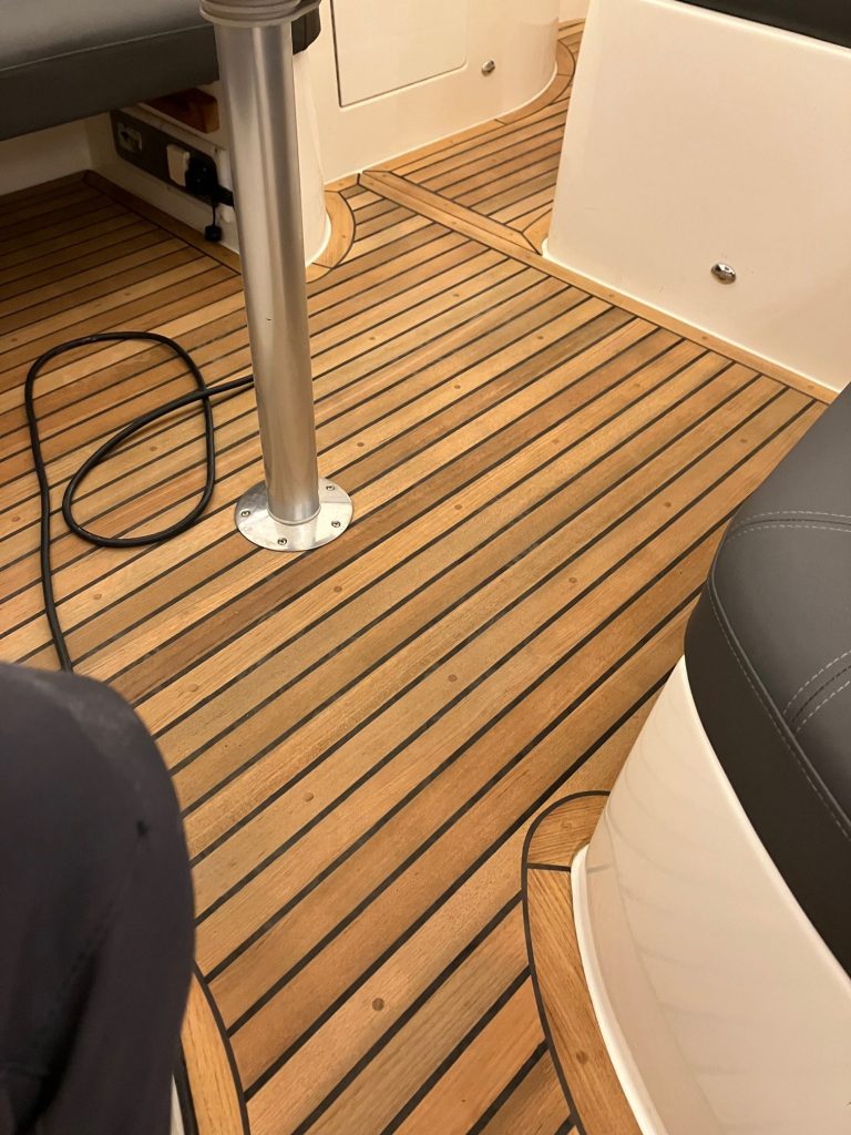 • Teakdäck (omnåtat och slipat vinter 2025/26)