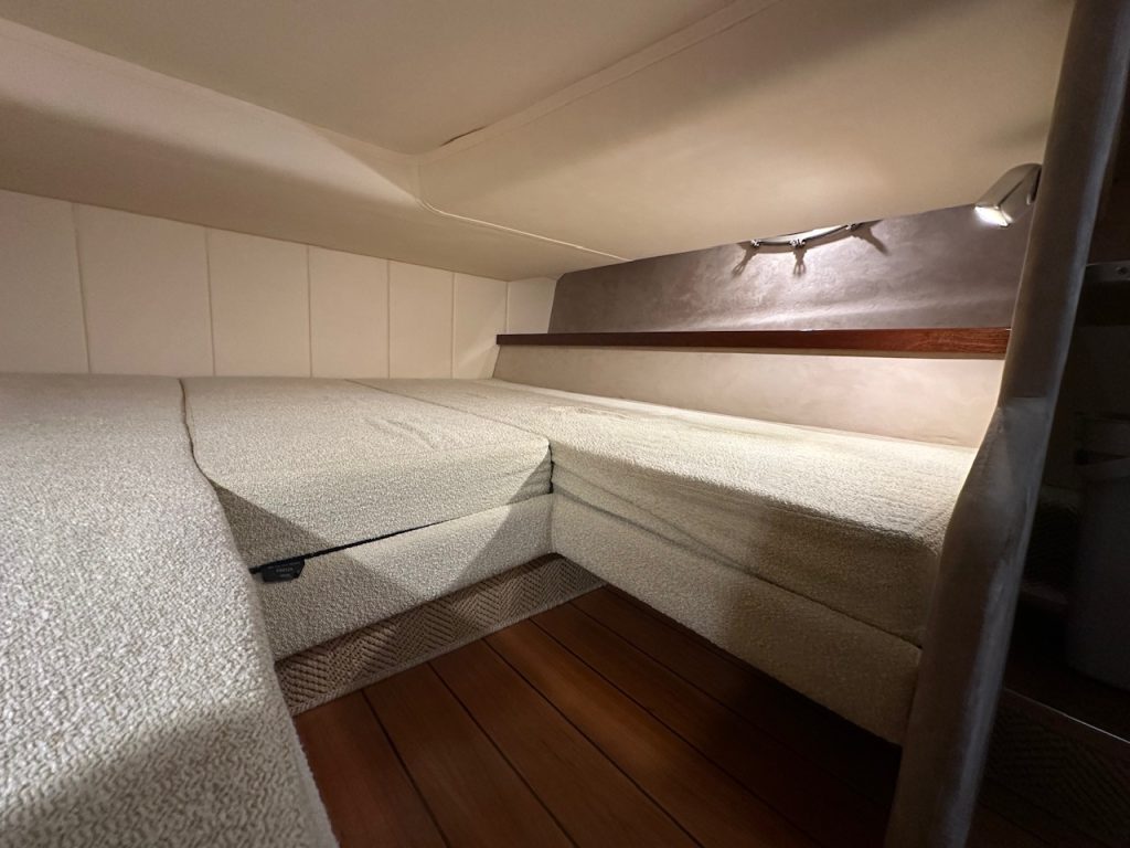 Windy 32 Grand Tornado – 2007, är en stor och öppen daycruiser som erbjuder bra boende för 4 personer i två separata utrymmen med väldigt bekväma madrasser. Båten har Mid-cabin och en rymlig bäddbar förpik, toalett med dusch, pentry, teakdurk och en riktigt rymlig sittbrunn för socialt umgänge både dag och kväll.