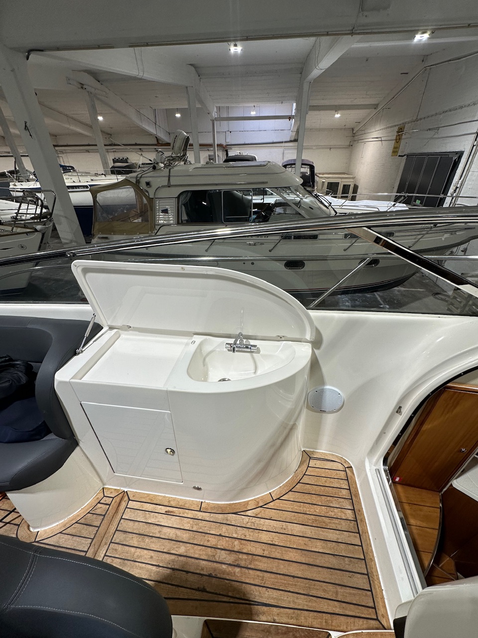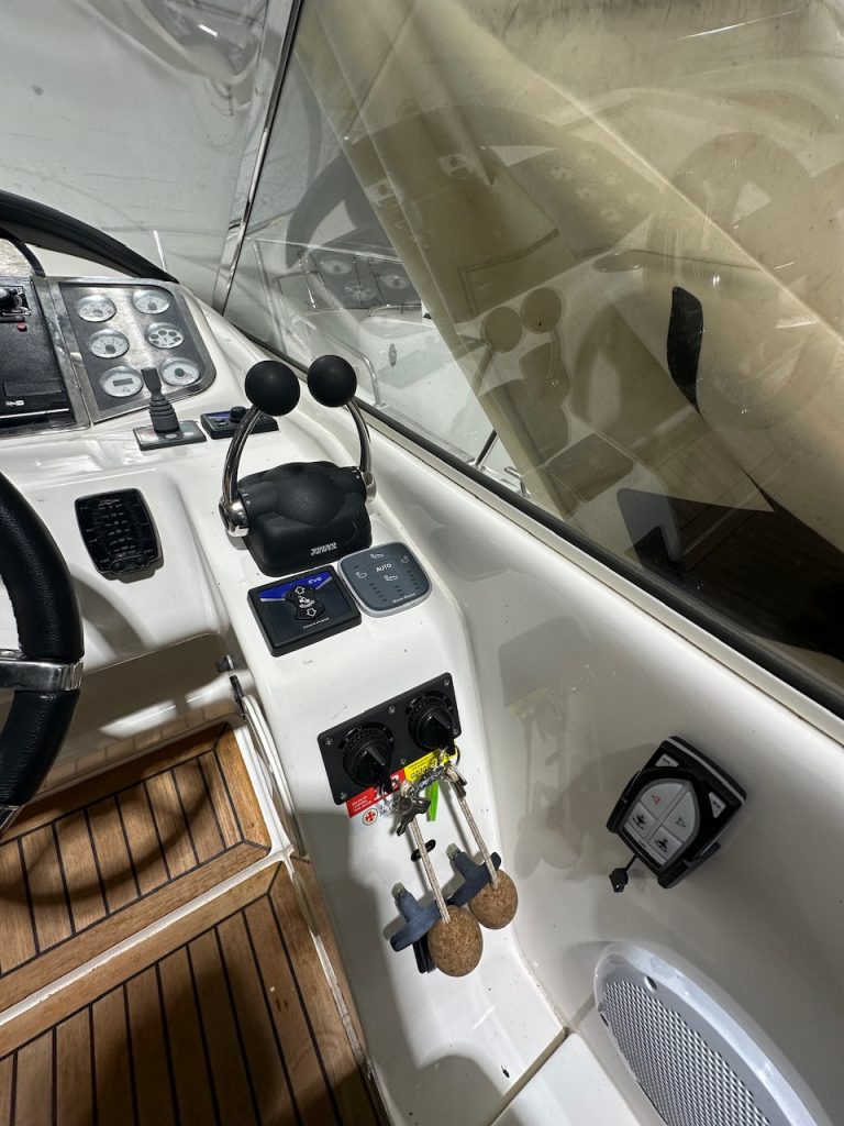 Vid sämre väder täcker det nya kapellet från Helly Hansen hela sittbrunnen med full ståhöjd, det finns även ett lägre hamnkapell från vindrutan och ner över bakom alla dynor. Motorer och dreven är professionellt servade på JF Marin i Limhamn de sista ca. 10 åren.