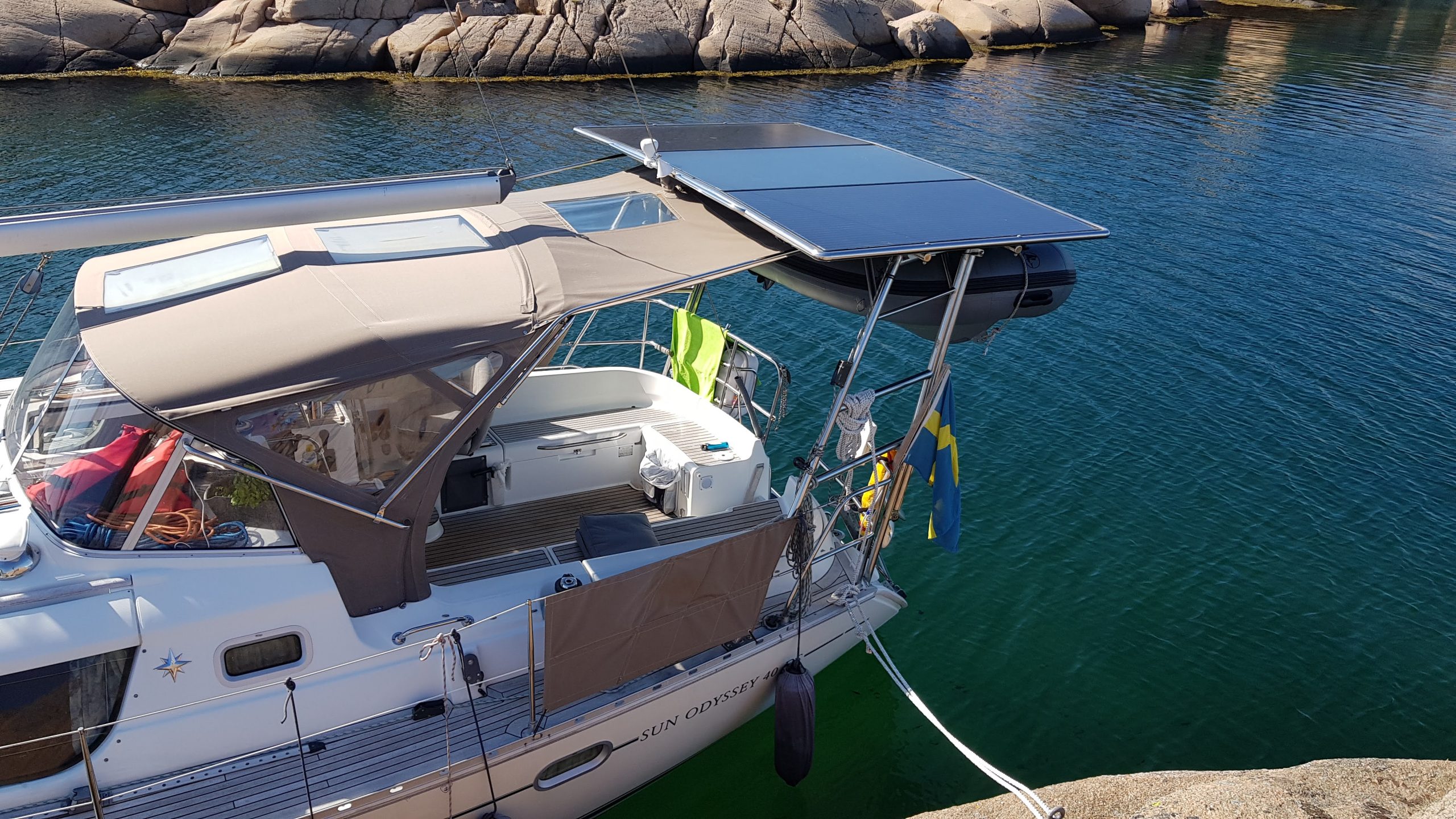 Båden er fuldt udstyret til langfart med et kraftfuldt energisystem med lithiumbatterier, hvilket gør den stort set selvforsynende med elektricitet. Det store cockpit indbyder til sociale stunder, og den praktiske badeplatform kan bruges, selv når gummibåden er hejst op. Ombord findes et nyrenoveret pantry, komfortable brusere og toiletter samt rigelig opbevaring. Bunden blev renoveret i 2022 med epoxy og ny bundmaling. Båden har en fast aksel med tætning skiftet i 2019 og kun 1819 motortimer. Fuld dokumentation foreligger, inklusive momsbevis og originalkontrakt. Klar til nye ejere og eventyr – kontakt os for mere info og fremvisning!