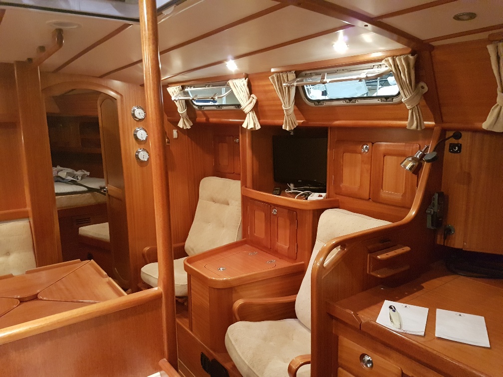 Det velplanlagte interiør med to kabiner, separat brusekabine og effektiv dieselvarme gør hende lige så ideel til lange passager som til komfortable weekender langs kysten. En pålidelig kvalitetsbåd for dem, der søger tryghed, elegance og ægte sejlglæde.