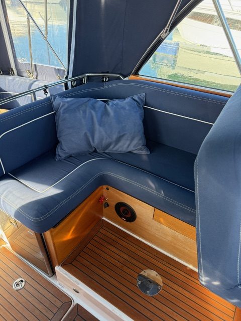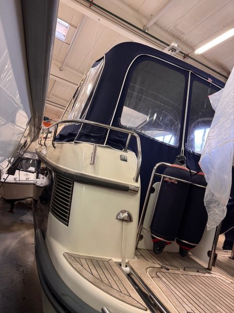 Båden har været opbevaret indendørs i over et årti og er løbende opdateret med blandt andet nyt el-toilet (2025), nyt helkaleche (2025), moderne ladningssystemer fra Victron med Bluetooth samt nyligt renoveret teak. Ombord tilbydes en velplanlagt indretning med to kabiner, rummelig salon og høj komfortniveau med varme i alle rum – perfekt til både weekendture og længere ophold.