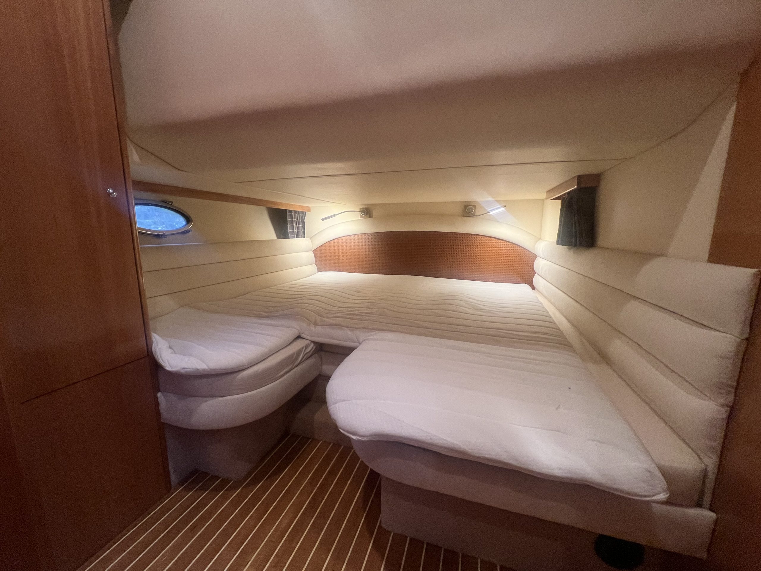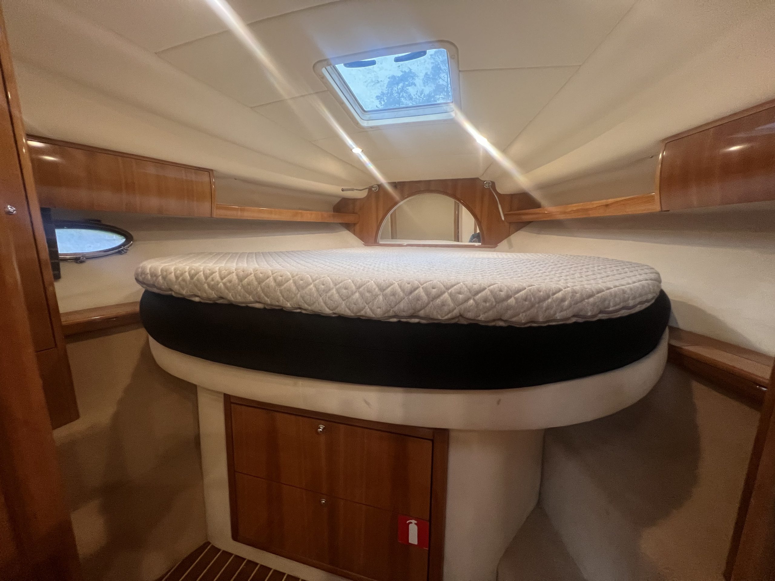 Motorer og drev er grundigt gennemgået med ventiler justeret i 2024, nye gearkabler til begge drev i 2025, drev trykprøvet i 2024 samt ompakkede trimcylindre i 2024. Skroget blev bundblæst og epoxybehandlet i 2020 – endnu et tegn på løbende og omhyggelig vedligeholdelse. En veludstyret og klassisk Windy, klar til komfortable og sikre ture til søs.