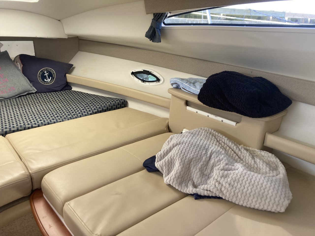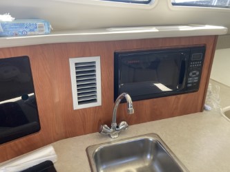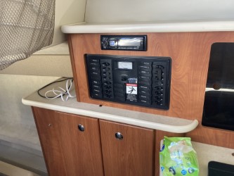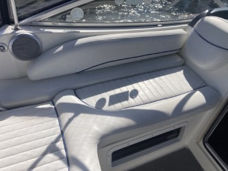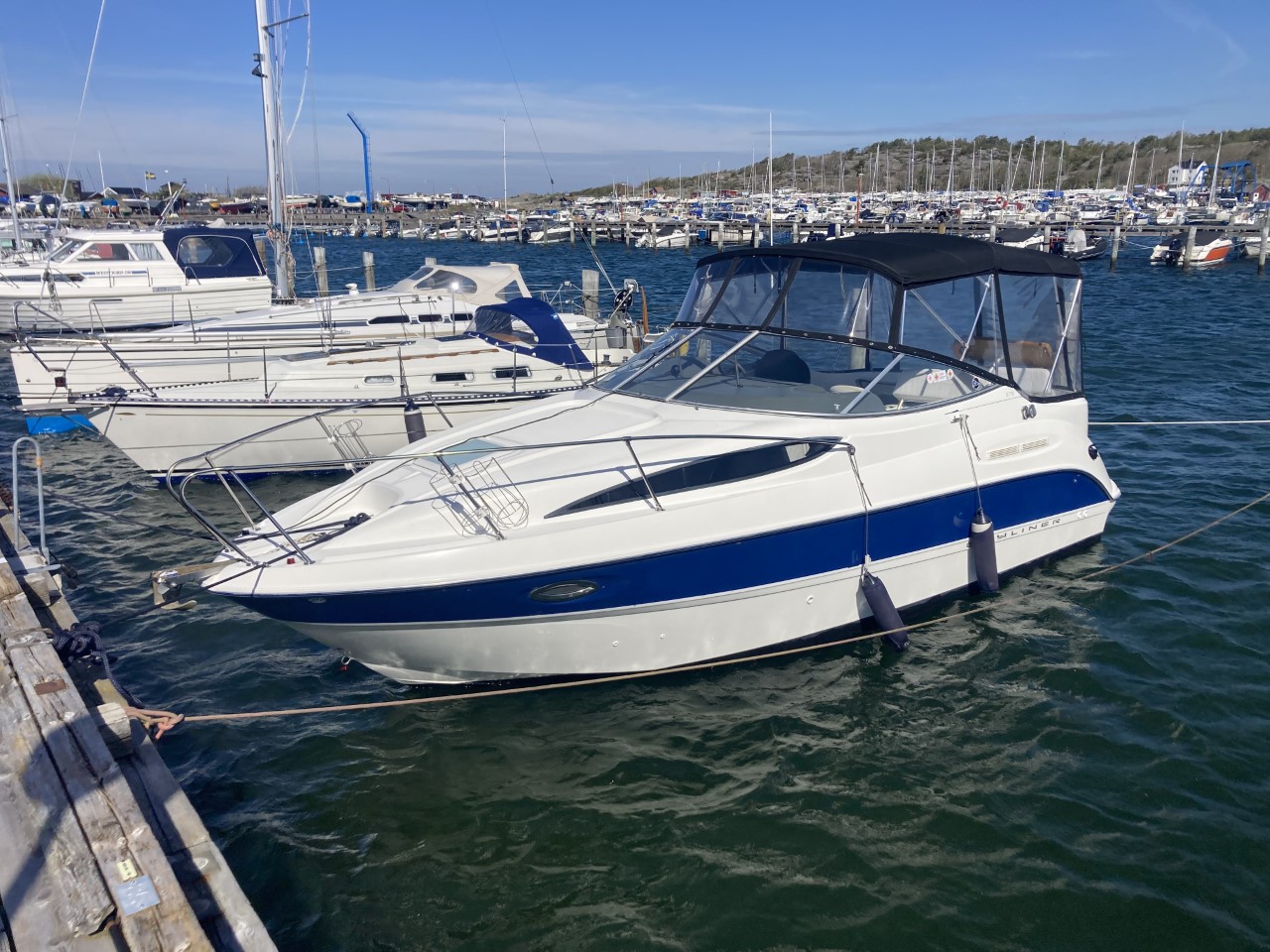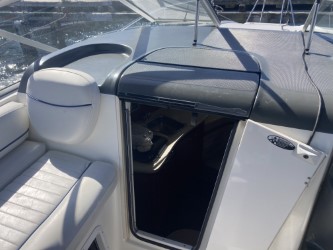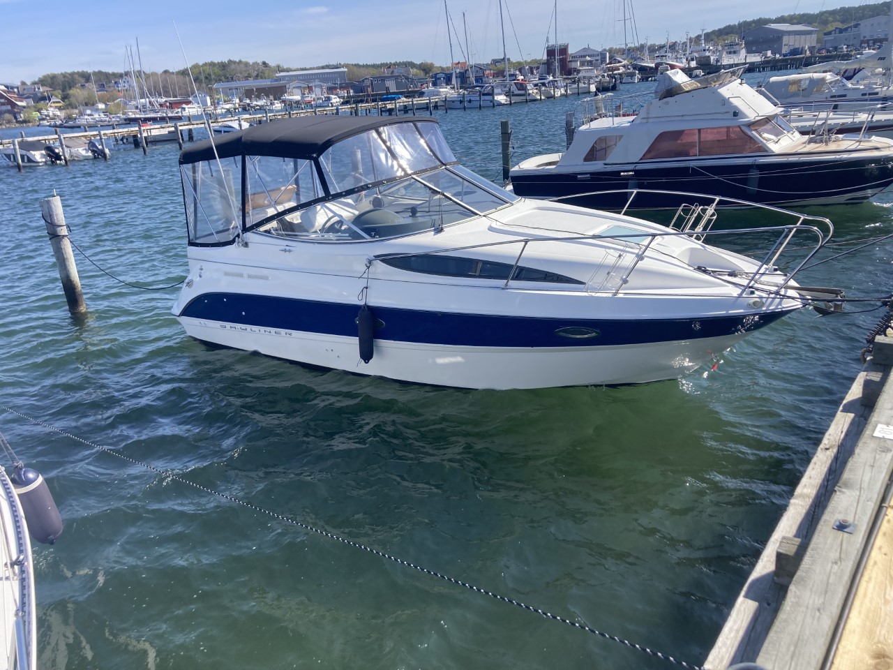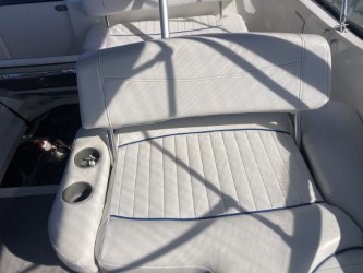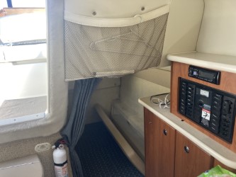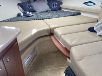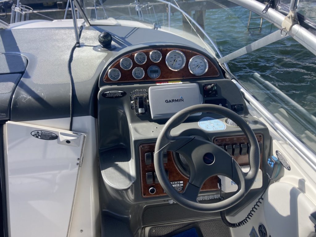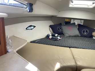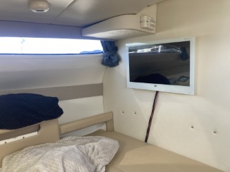 Do not miss this well-maintained Bayliner 275 SB of the wide, sought-after model with a convertible dinette and fixed double berth in the bow, which has only run about 450 hours since new. The layout in the boat’s cabin, where 4 adults and 1 child can sleep comfortably, is unbeatable with the dinette for 4 people that can be converted into an extra berth, the double berth in the bow, and the spacious mid-cabin. A large, fully equipped galley with plenty of counter space and storage, as well as a bathroom with a flush toilet and shower with hot and cold water, is also available.