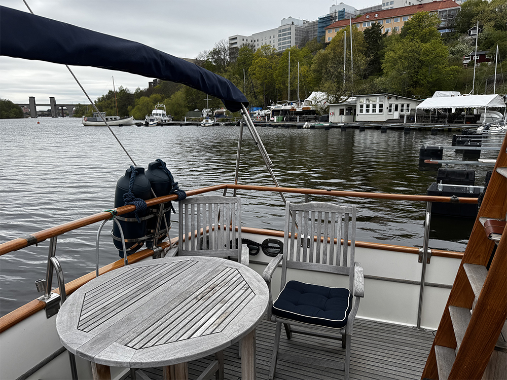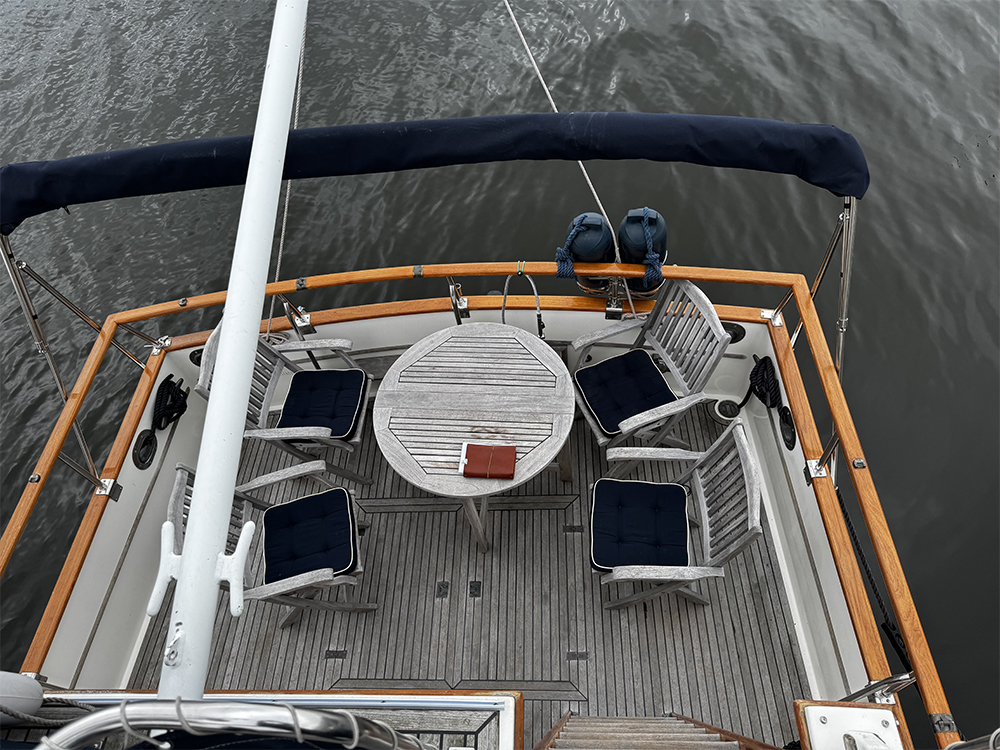 Teak table on flybridge