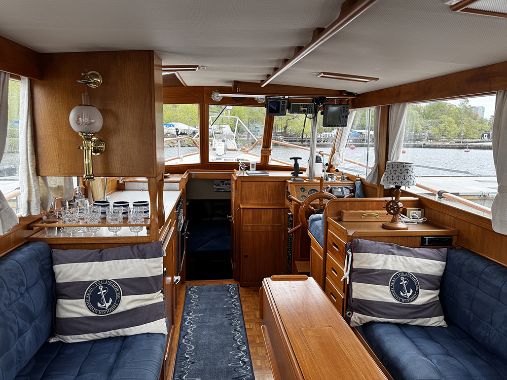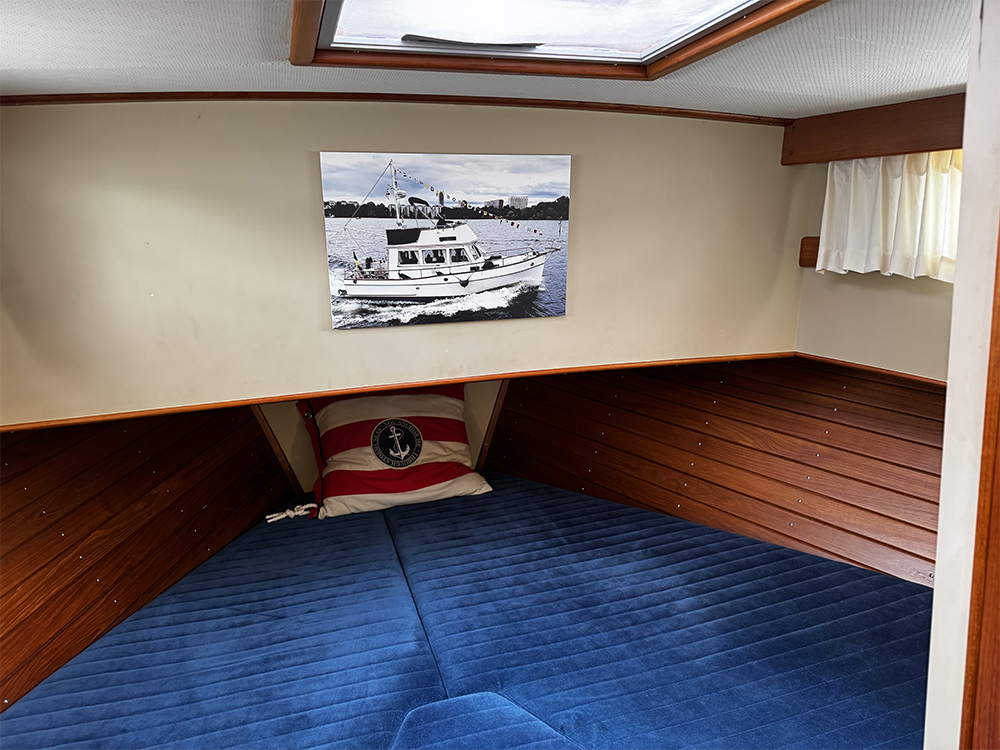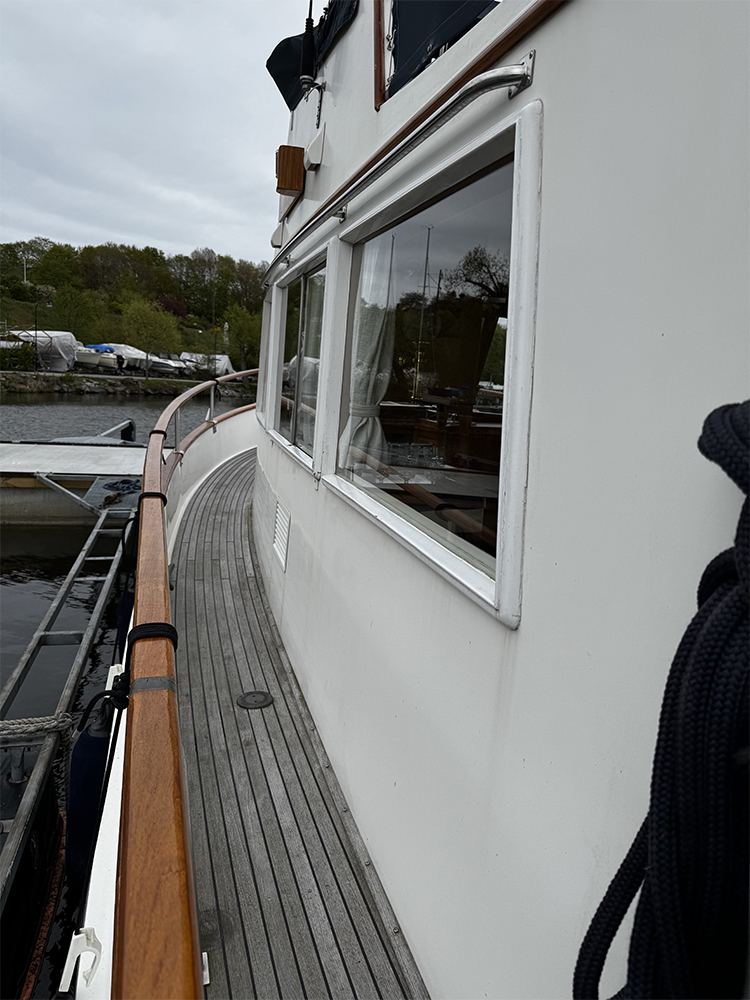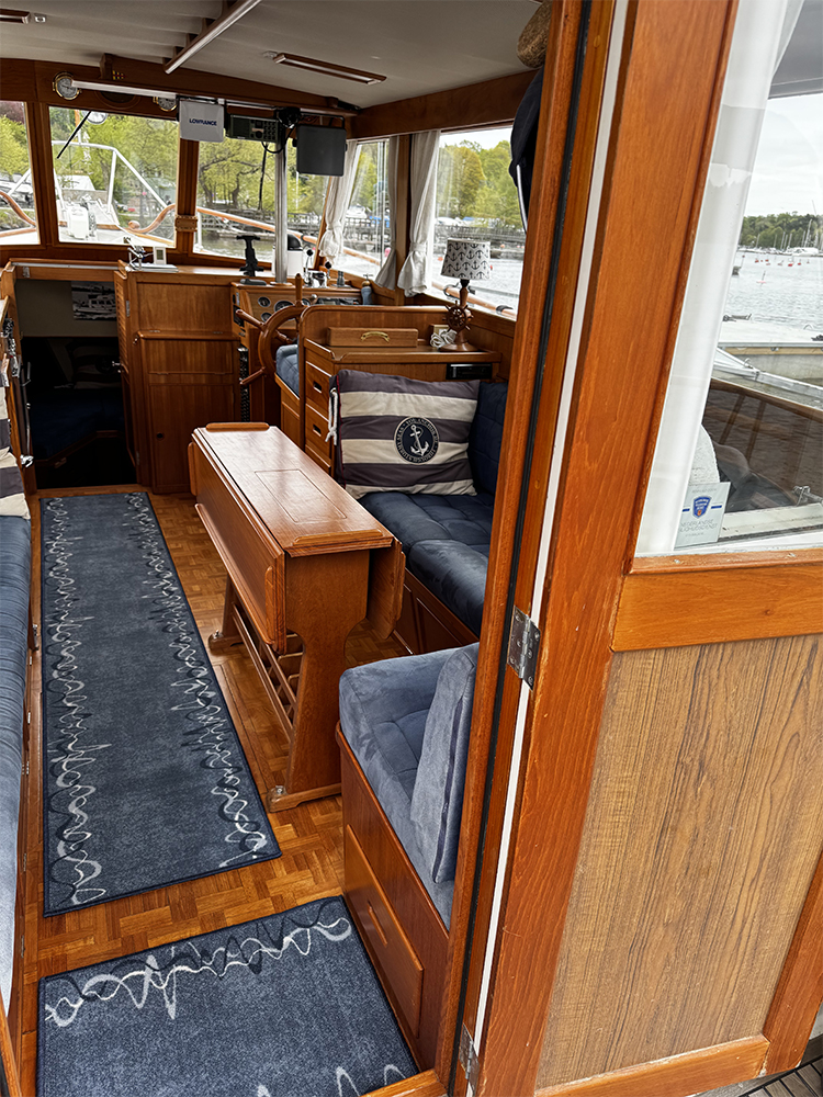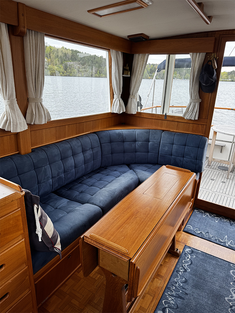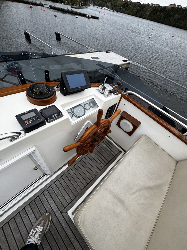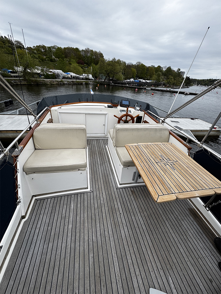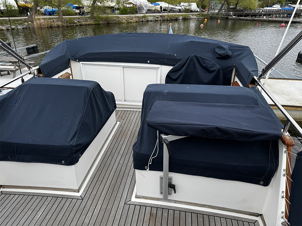 Grand Banks 32 – a classic in incredible condition. Manufactured in 1989. Brought home by the current owner from the Netherlands in 2017. Continuously updated and winter-stored in a cold hall. Has been in freshwater centrally in Stockholm since 2017. All interior is original. L-shaped sofa in the cabin behind the helm. Straight sofa on the opposite side that can be converted to provide additional sleeping space. In front of this is the galley with large countertop areas. Stove with oven and refrigerator. Sink with hot and cold pressurized water. Spacious master cabin in the bow with drawers underneath and a large wardrobe to port. WC with shower, pressurized hot and cold water. All cushions in the cabin and forepeak replaced in 2017. Well-preserved teak deck, seating area in teak on the aft deck. On the flybridge, additional seating with a teak table. Custom-made covers. Bimini top for flybridge and aft deck (2023). All original and service documents as well as VAT receipt.
