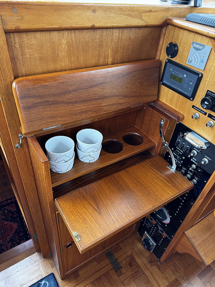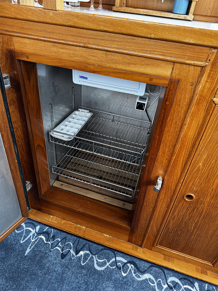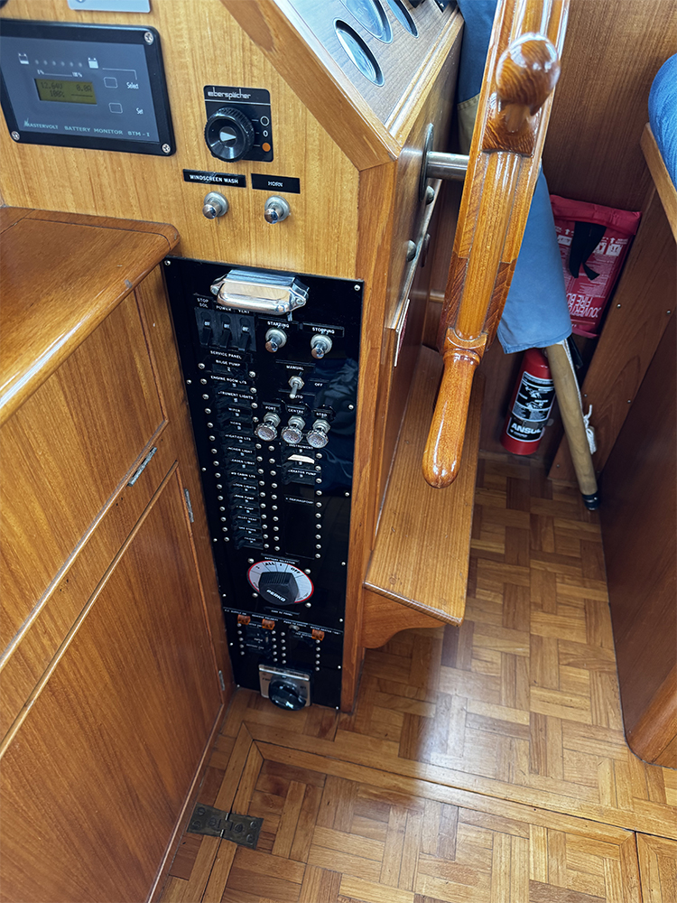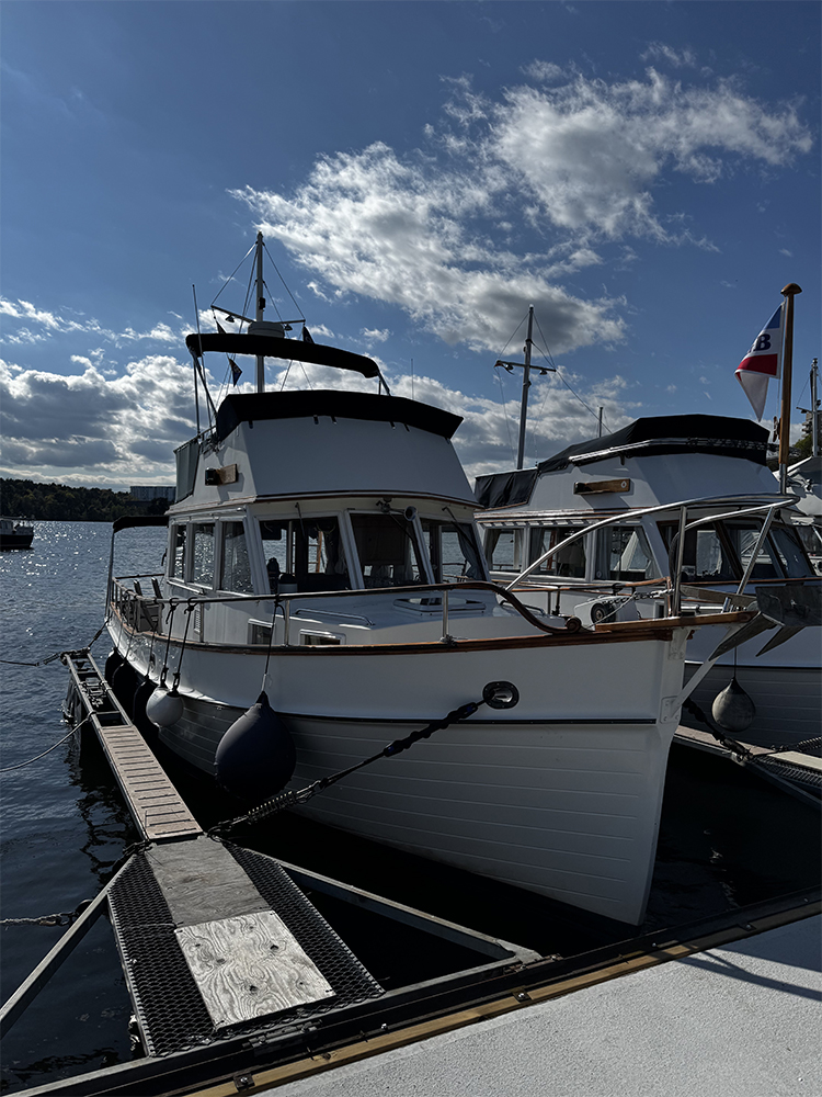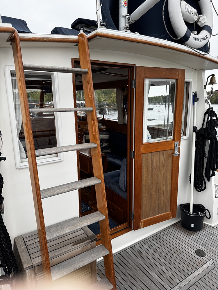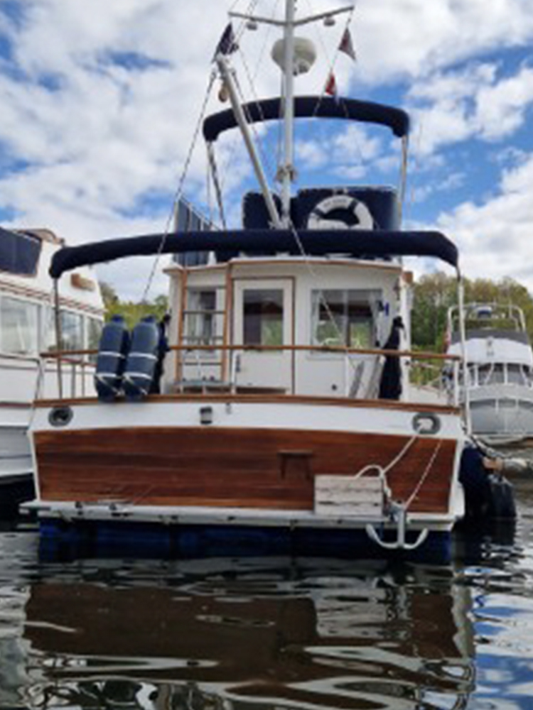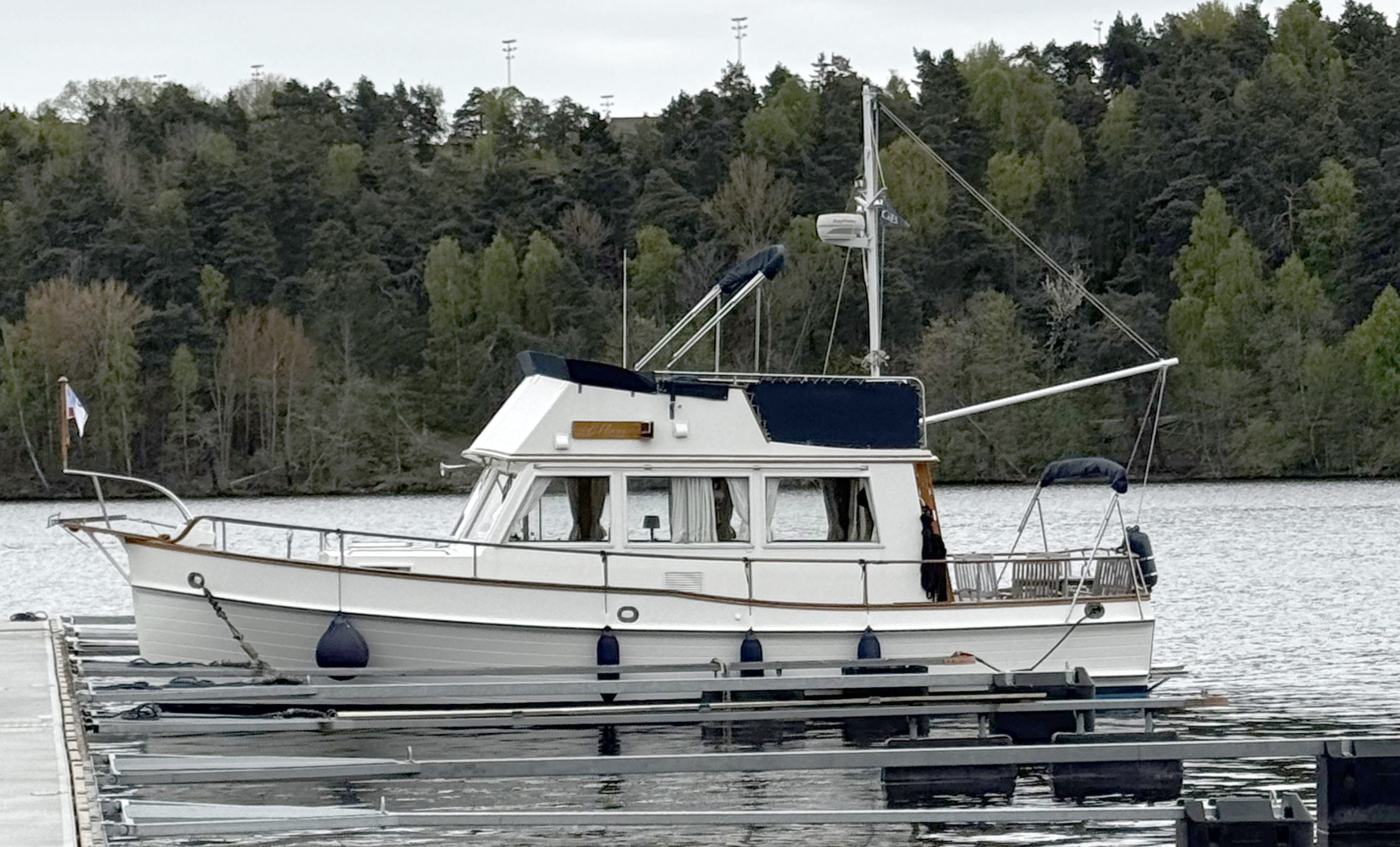 Grand Banks 32 – a classic in incredible condition. Manufactured in 1989. Brought home by the current owner from the Netherlands in 2017. Continuously updated and winter-stored in a cold hall. Has been in freshwater centrally in Stockholm since 2017. All interior is original. L-shaped sofa in the cabin behind the helm. Straight sofa on the opposite side that can be converted to provide additional sleeping space. In front of this is the galley with large countertop areas. Stove with oven and refrigerator. Sink with hot and cold pressurized water. Spacious master cabin in the bow with drawers underneath and a large wardrobe to port. WC with shower, pressurized hot and cold water. All cushions in the cabin and forepeak replaced in 2017. Well-preserved teak deck, seating area in teak on the aft deck. On the flybridge, additional seating with a teak table. Custom-made covers. Bimini top for flybridge and aft deck (2023). All original and service documents as well as VAT receipt.
