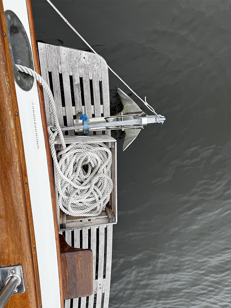 Loose anchor aft with leaded line