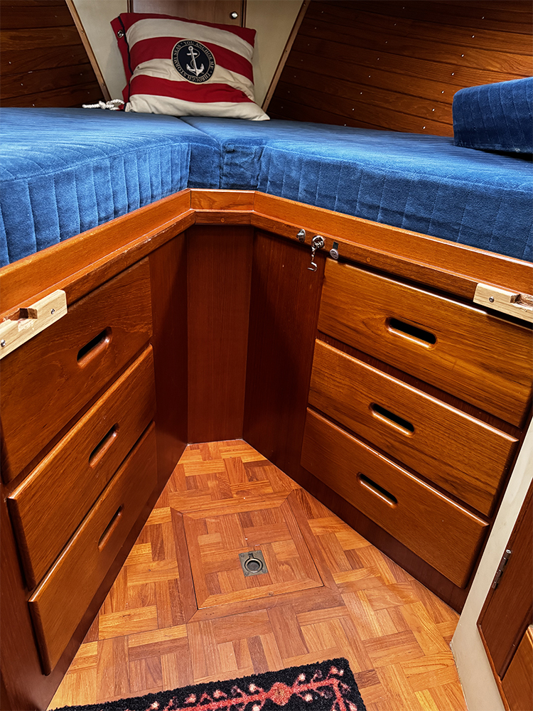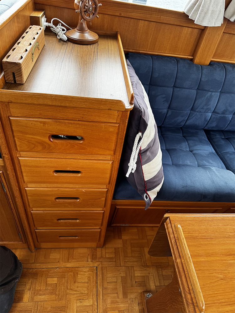 All cushions in the salon and forepeak reupholstered in 2017