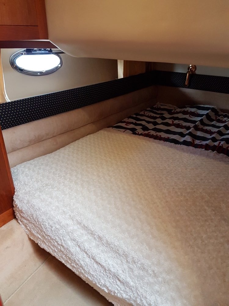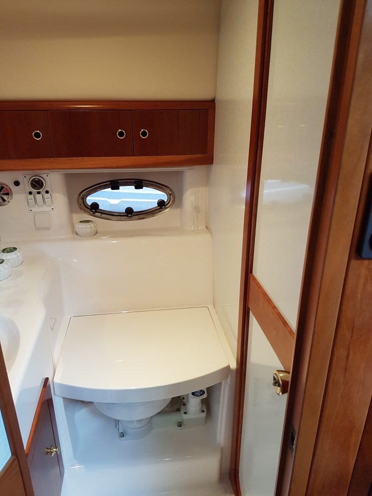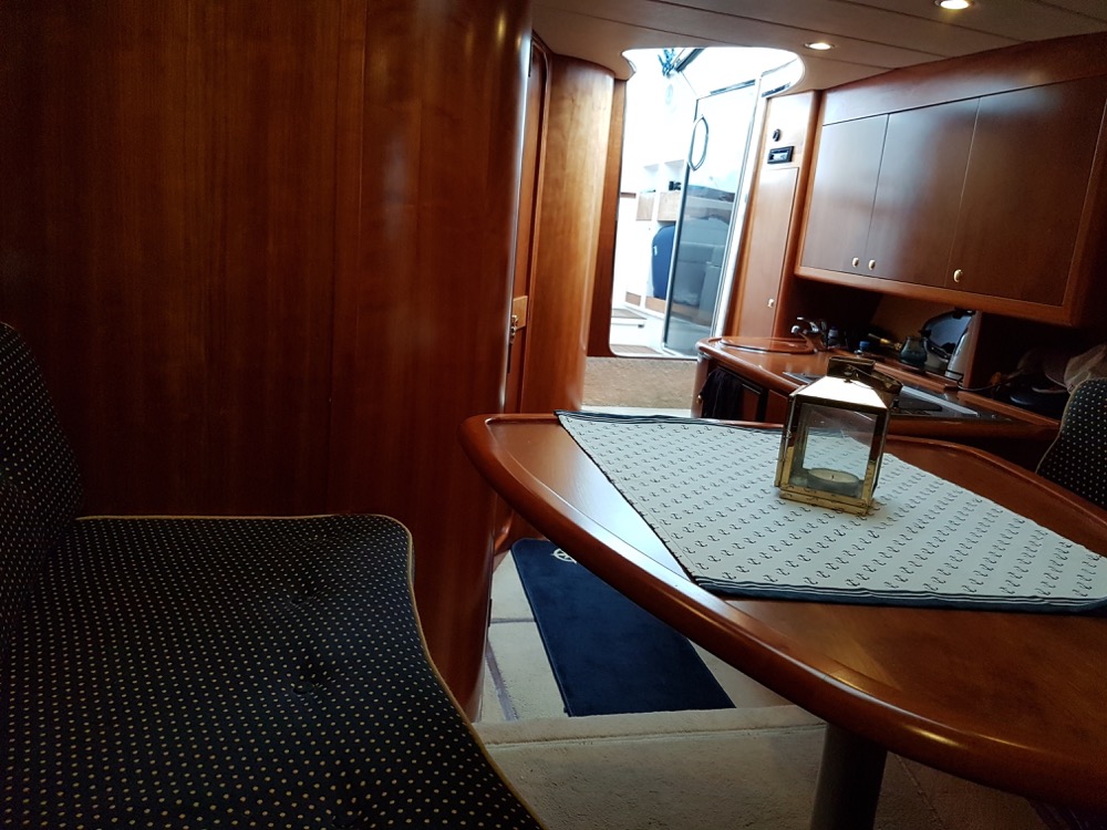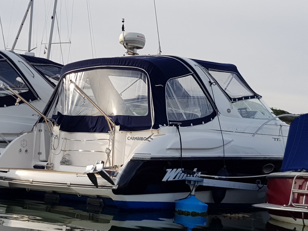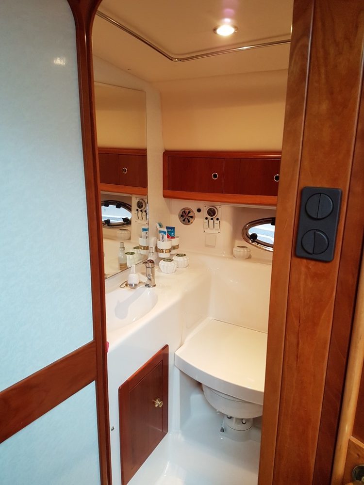 Windy 32 – 1998 is a large and open day cruiser that offers good accommodation for 4 people. Mid-cabin and a spacious convertible V-berth. The boat has a toilet (holding tank) with shower, galley, fine teak deck, and a really spacious cockpit where many can gather at the same time. In bad weather, the canopy covers the entire cockpit (standing height).