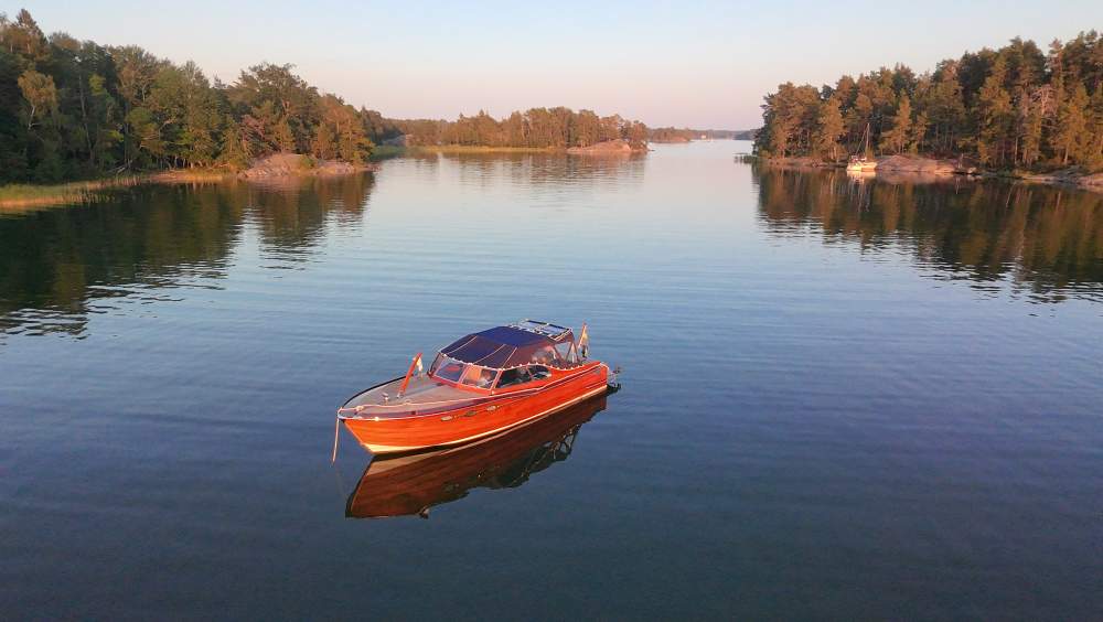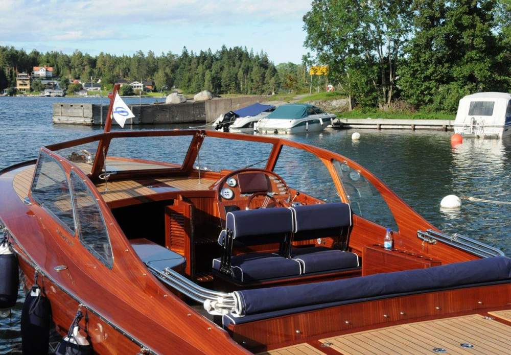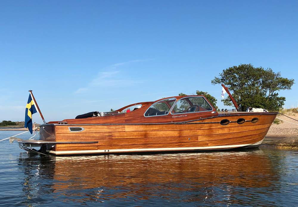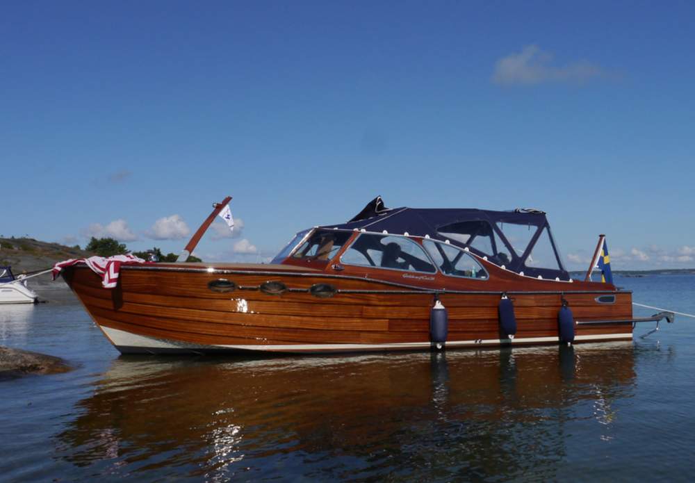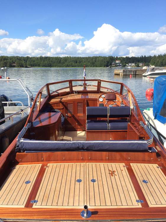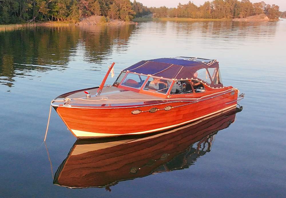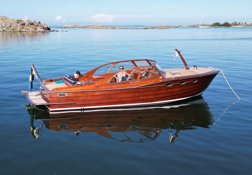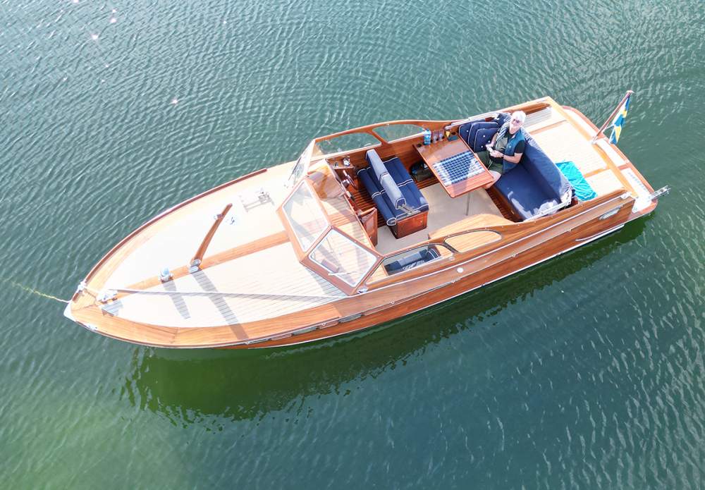 Med sin tidlösa retrodesign, signerad Håkan Södergren och Bo Zolland, förenar båten klassiskt träbåtshantverk med modern teknik och pålitlig prestanda. Konstruktionen är genomtänkt in i minsta detalj: skrovet är byggt i glasfiber under vattenlinjen, inklusive motorbädd och akterspegel, medan skrovsidorna över vattenlinjen är klinkerbyggda i massiv sapele-mahogny. Ytan är behandlad med 2-komponentslack, vilket ger ett exklusivt uttryck och samtidigt mycket lågt underhållsbehov.