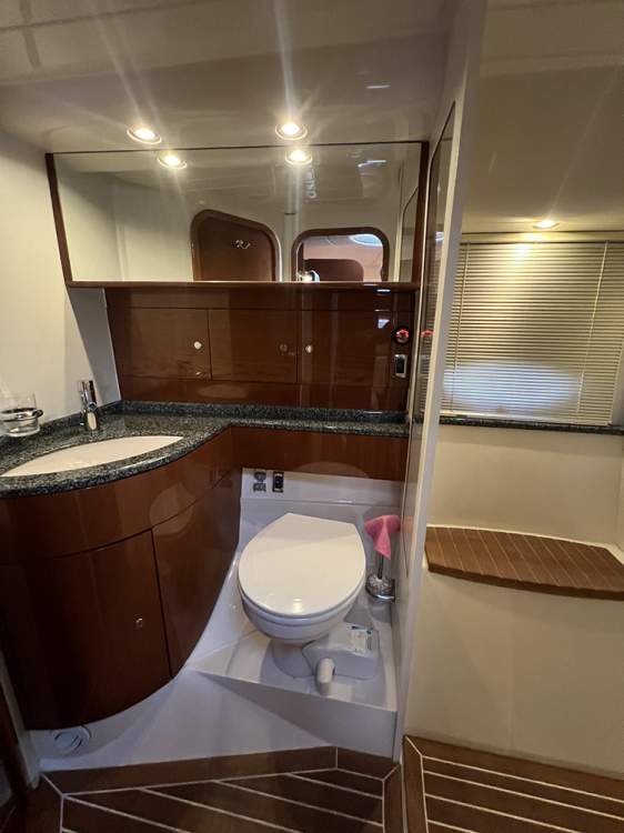 Navigationsutrustningen består av Furuno-plotter, radar, Raymarine-autopilot och VHF från Simrad, vilket ger en trygg helhet för både kustnära och längre turer. Onan-generatorn, uppgraderad ljudanläggning, nya kapell och praktiska detaljer som fjärrstyrt akterankare och teakdäck gör båten väl rustad för bekvämt båtägande. Med dokumenterad servicehistorik och förvaring i varmhall framstår denna V42 som ett genomtänkt val för dig som söker en sportcruiser med kvalitet och driftsäkerhet i fokus.